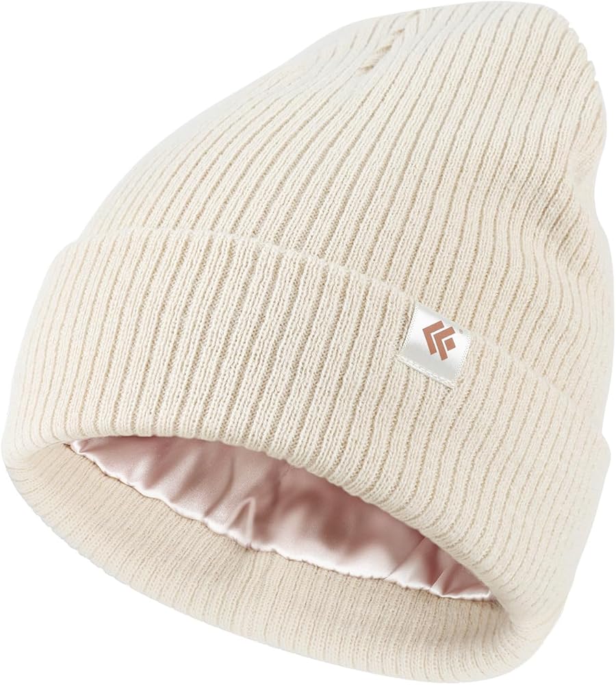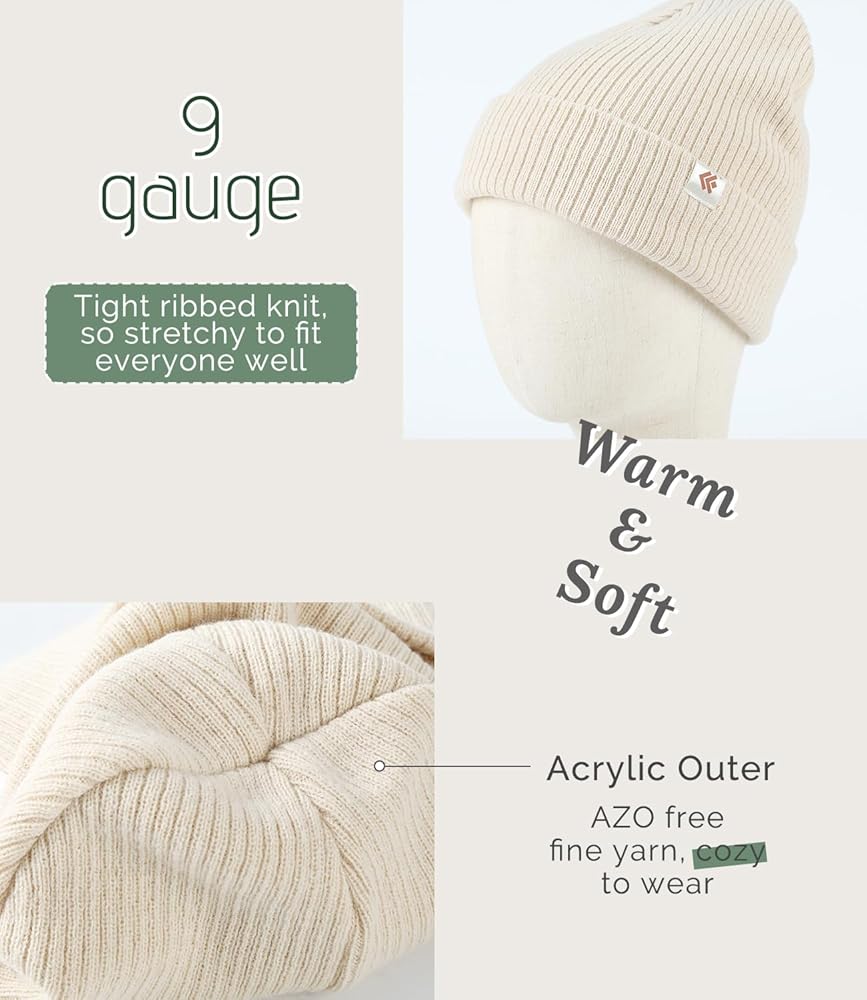 Beanie with Premium Quality: Made of 100% soft, AZO free acrylic and lined with 100% silk-like smooth satin, the beanie hat is so cozy to wear in winter. The 9 gauge ribbed tight knitting offers superior insulation to keep your head and ears warm in the biting cold. The winter hat is also soft and stretchy to your head for a snug yet comfortable fit.
