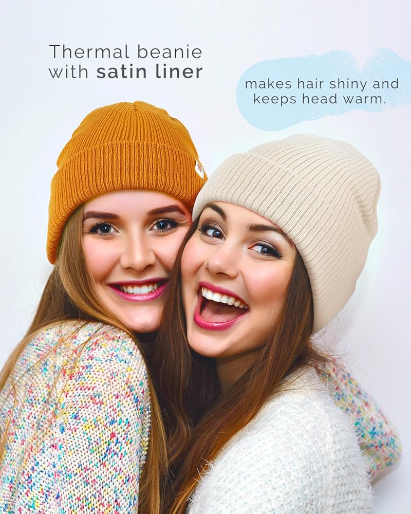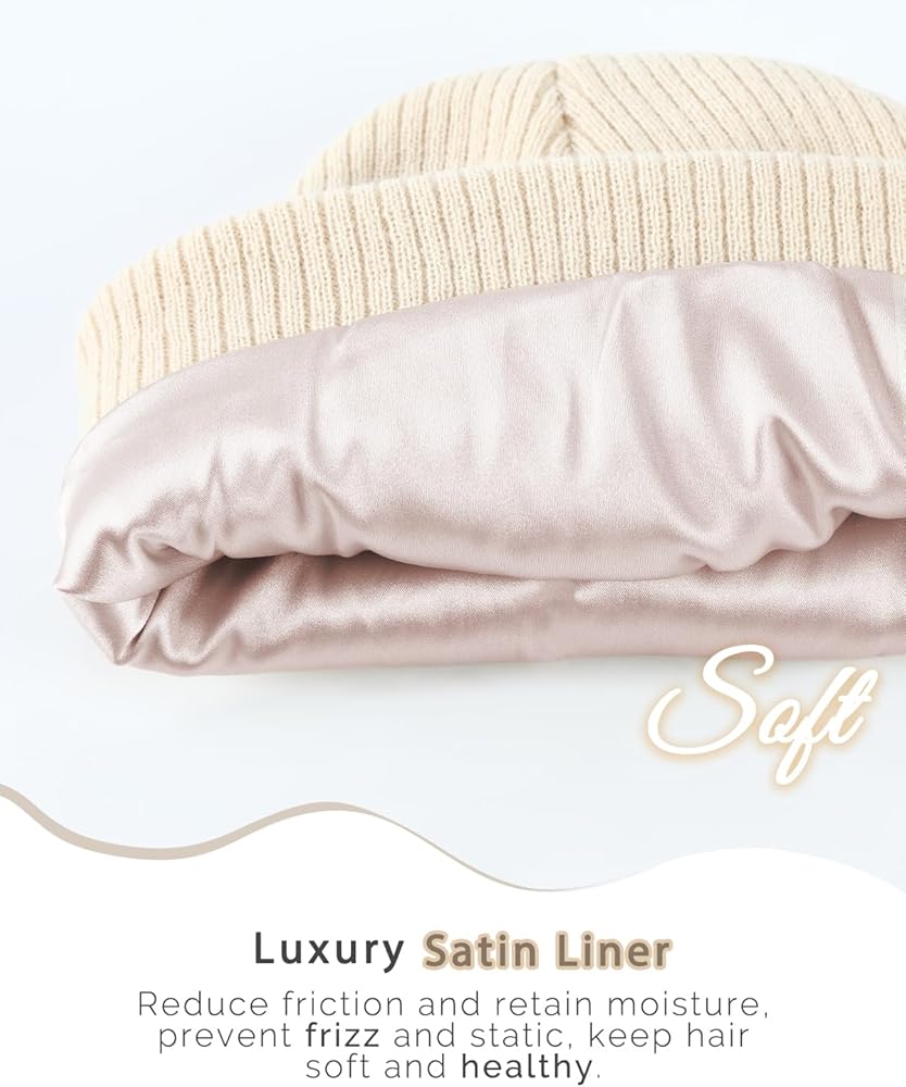 Keep Hair Protected: The beanie features its satin lining, it not just gives you a cozy wearing experience, but also protects your hair all the time by reducing friction and restaining moisture, keeps your hair free of tangles, breakage and frizz. Our satin lined beanies will not mess up your hairstyle, instead the satin always keeps your hair fresh.