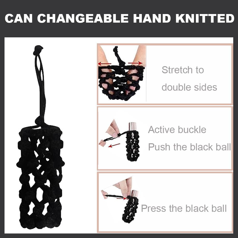 Hand-Knitted Net Lipstick Holder: Made of soft wool, be knitted by hand, double line with a little active buckle for change the net easily according to the lipstick's size.not only practical but also stylish and eye-catching. Smooth, firm, not easy to slip off, adjustable size, when tightening the active buckle.