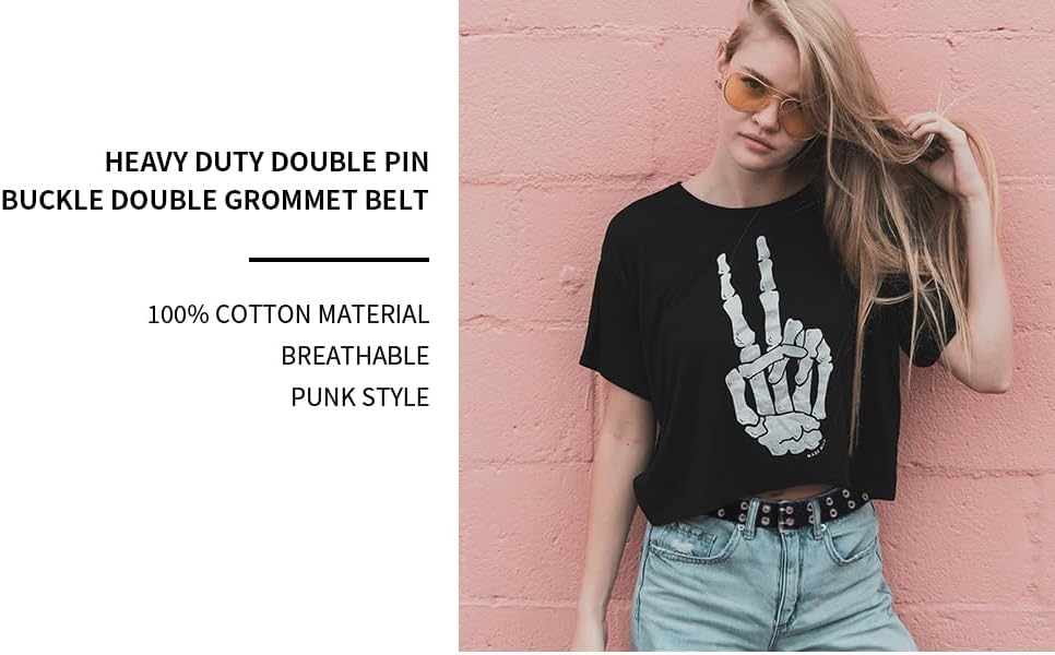 Sturdy Metal Buckle and Tip: Equipped with a robust metal buckle and tip, this belt is designed to last. The double grommet design adds a punk, rock, and fashion style to your outfit.