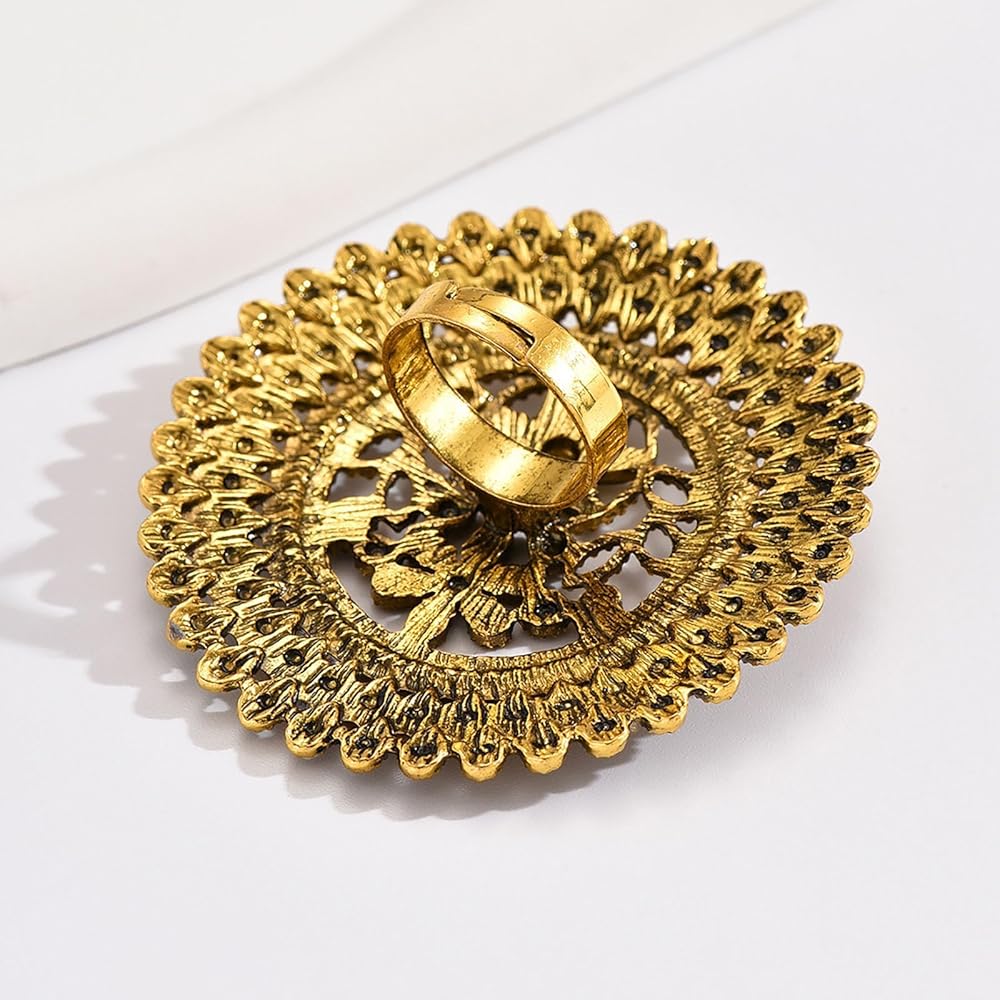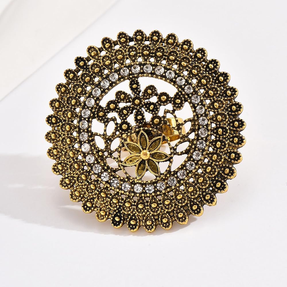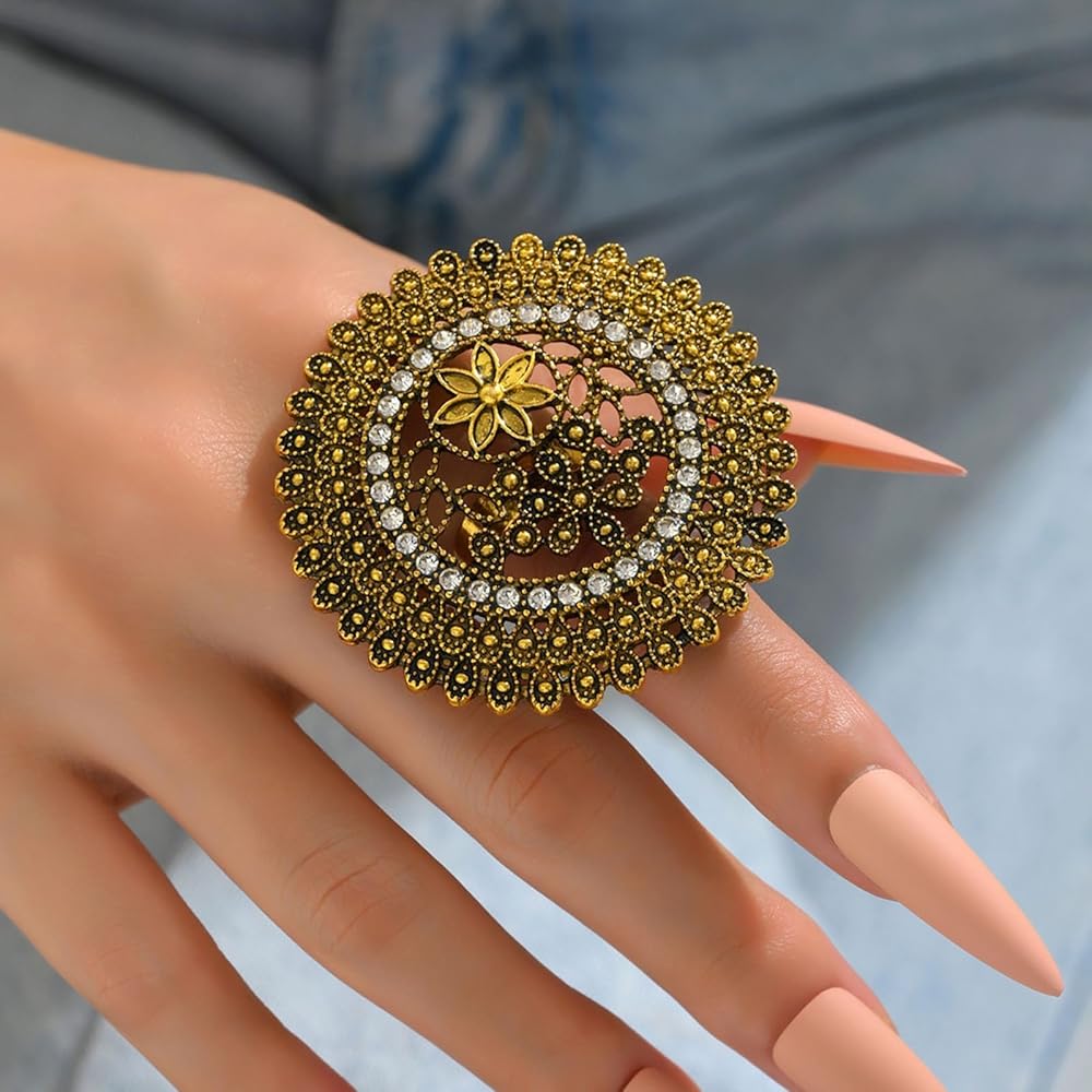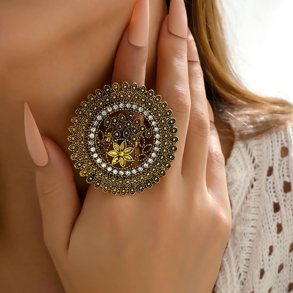 Vintage Ethnic Ring for Women - You will receive a big flower styles of ring. The vintage styles allows you to mix and match your favorite look at will and can meet your different outfit needs every day.
