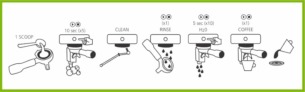 Re-insert handle with blind filter, start and stop cycle 10 times - run for 5 seconds, stop for 2 seconds to ensure thorough rinsing. Remove blind filter and insert regular filter.