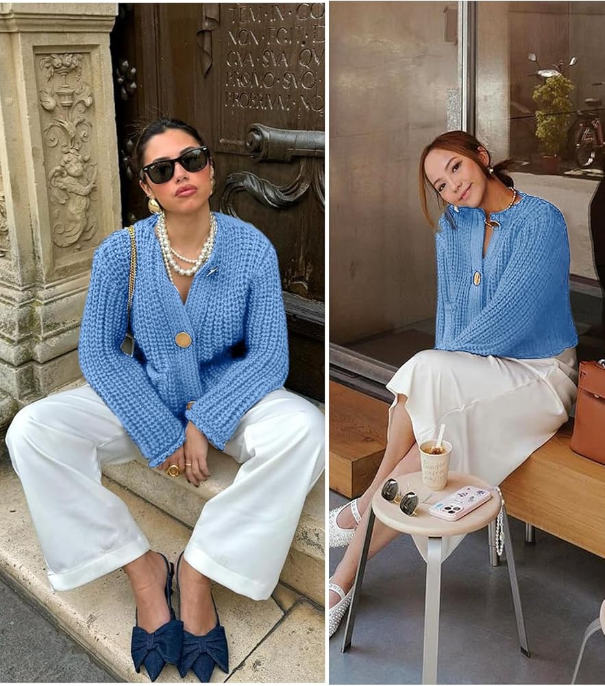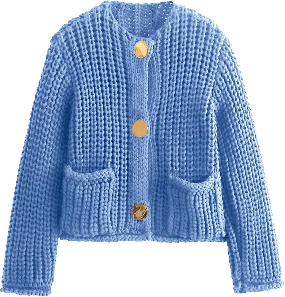Chunky Cardigan:Cropped knit sweater cardigans are made of soft and comfortable knitted fabrics, chunky and warm, so you can wear a stylish look in Autumn/Winter 2024.