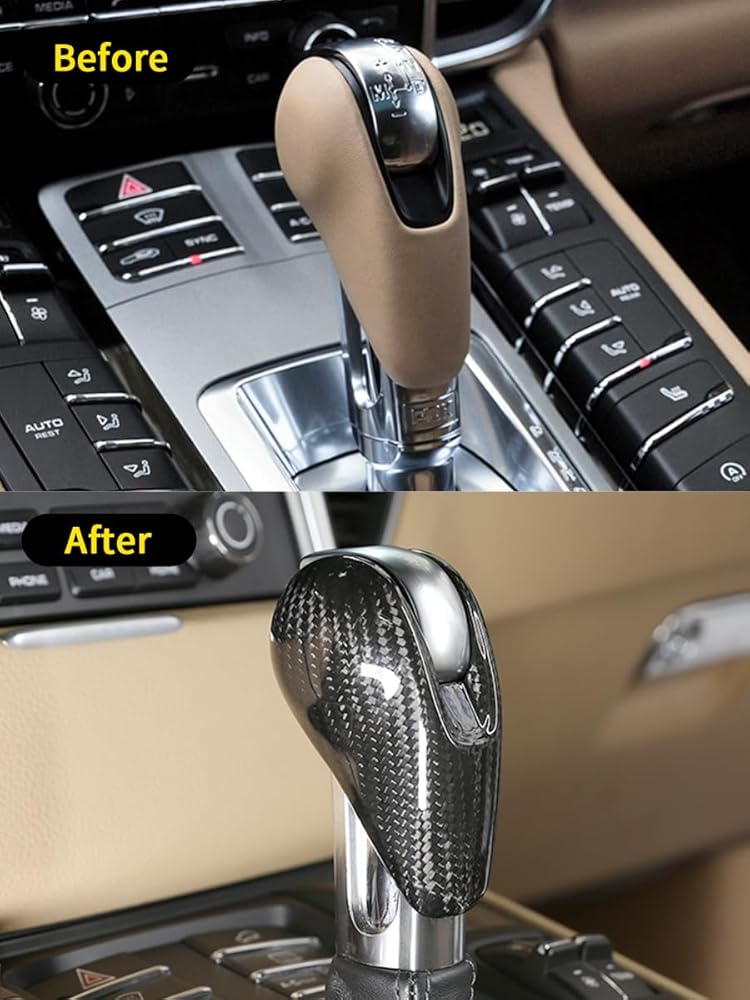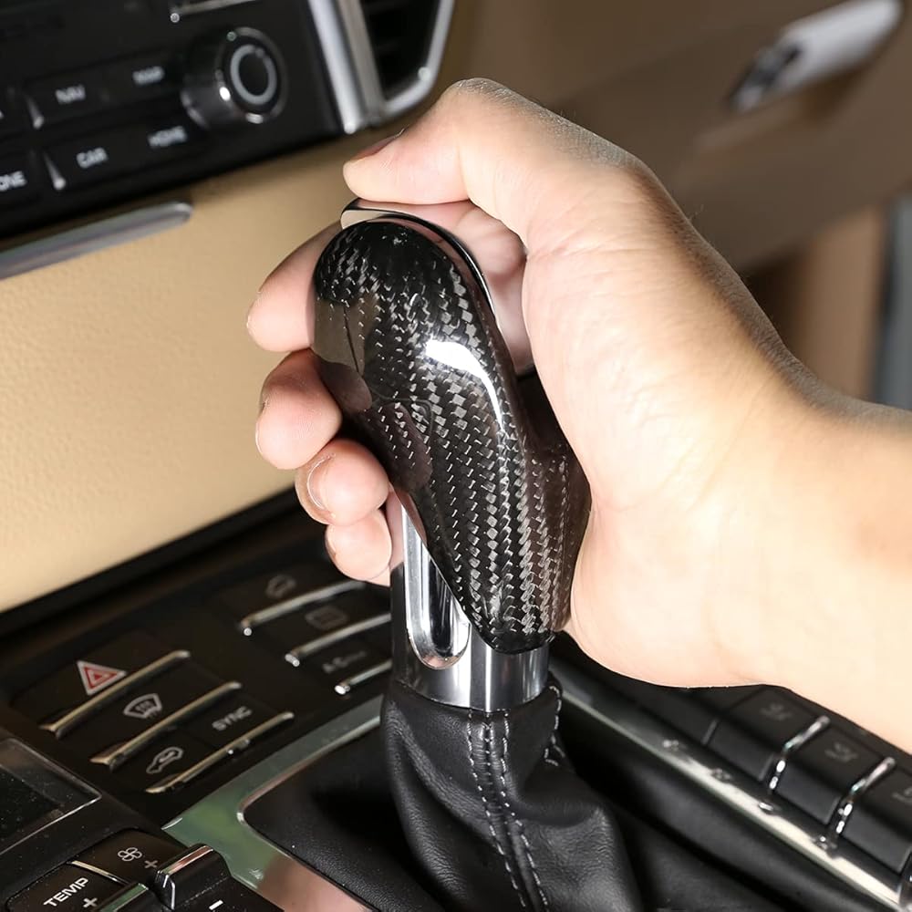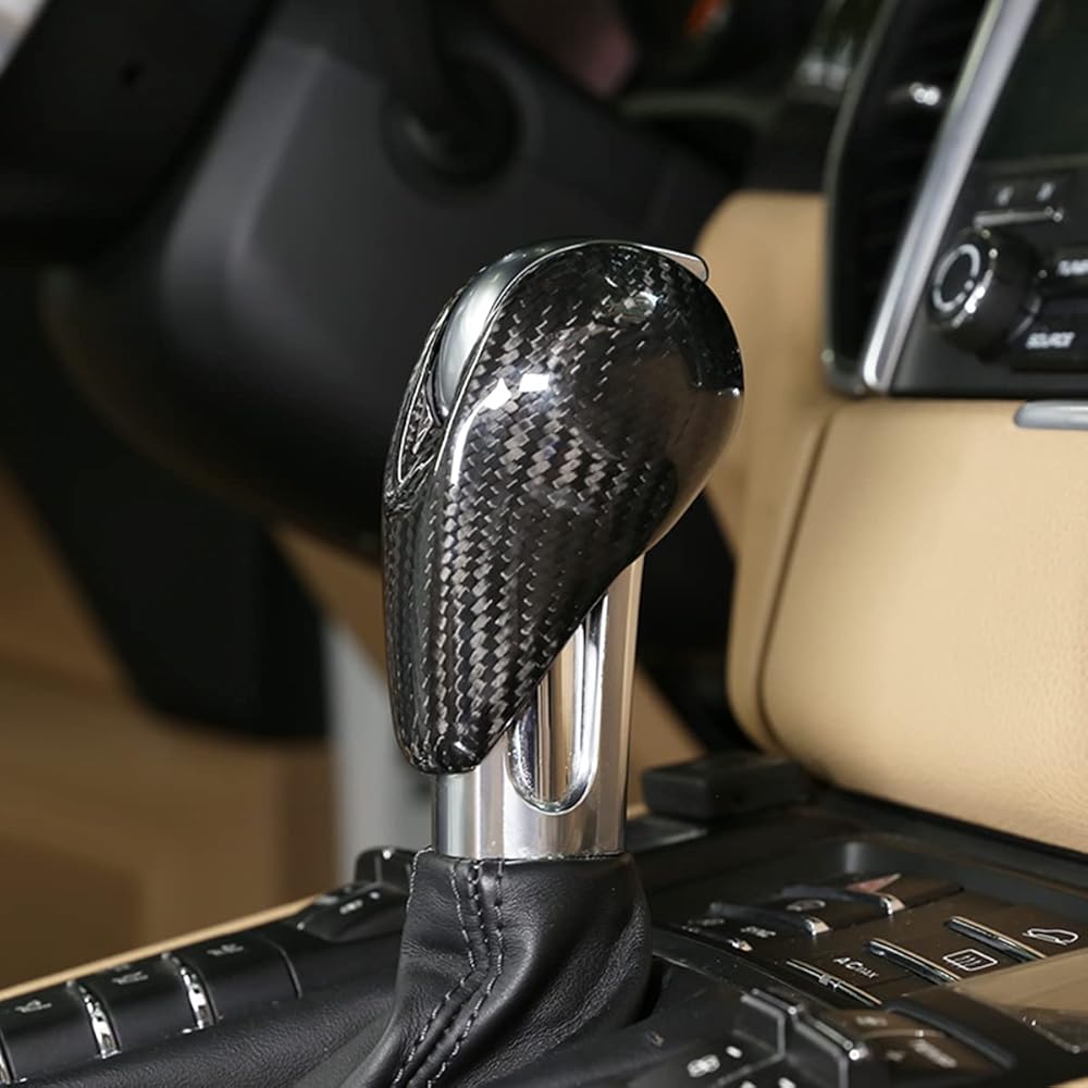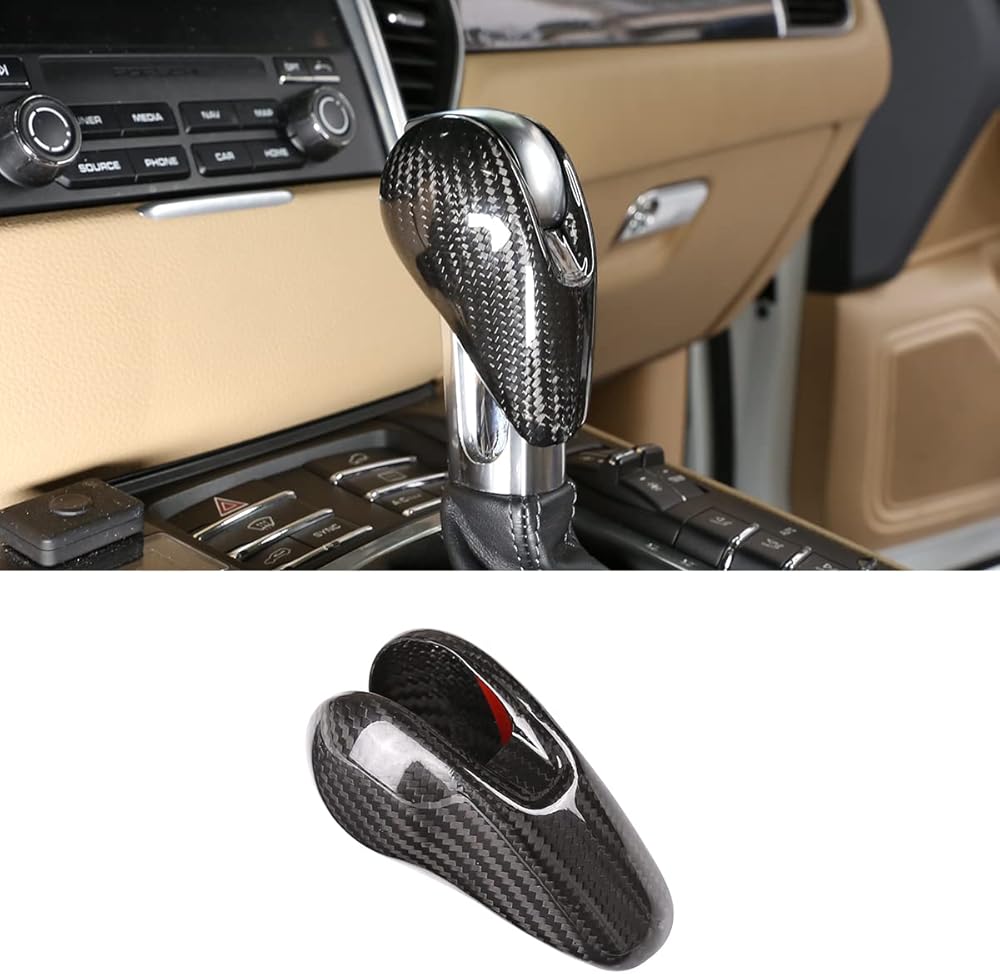 Fit for Porsche Macan Panamera Cayman 911 718 Boxster 2009-2020 Real Carbon Fiber Interior Gear Shift Head Cover Knob Trim Car Interior Accessories (Carbon Fiber Black)