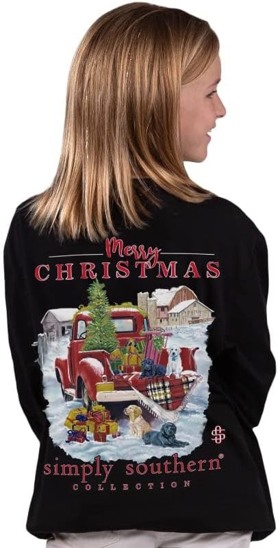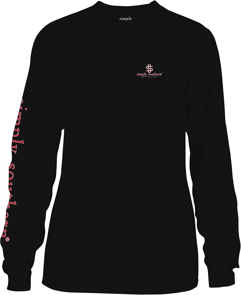 Black long sleeve shirt with the phrase "Merry Christmas" and the Simply Southern logo on the back and along the right sleeve. Unisex sizing.