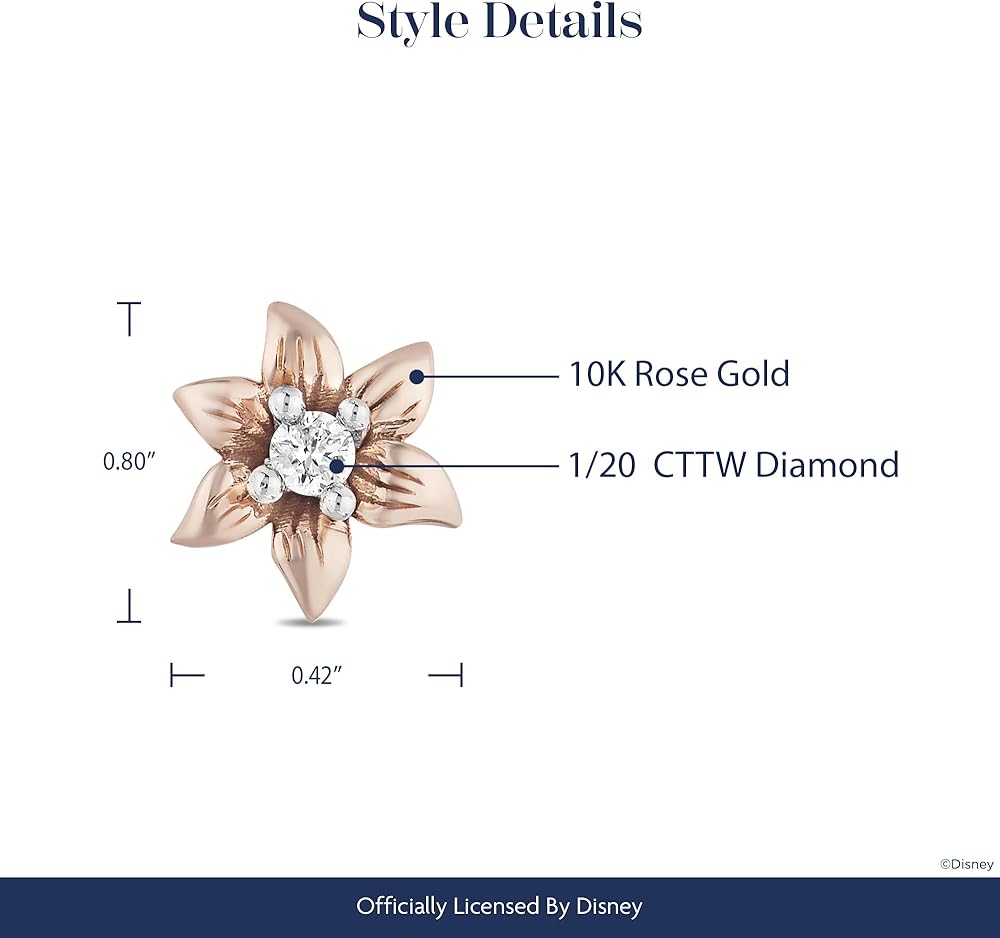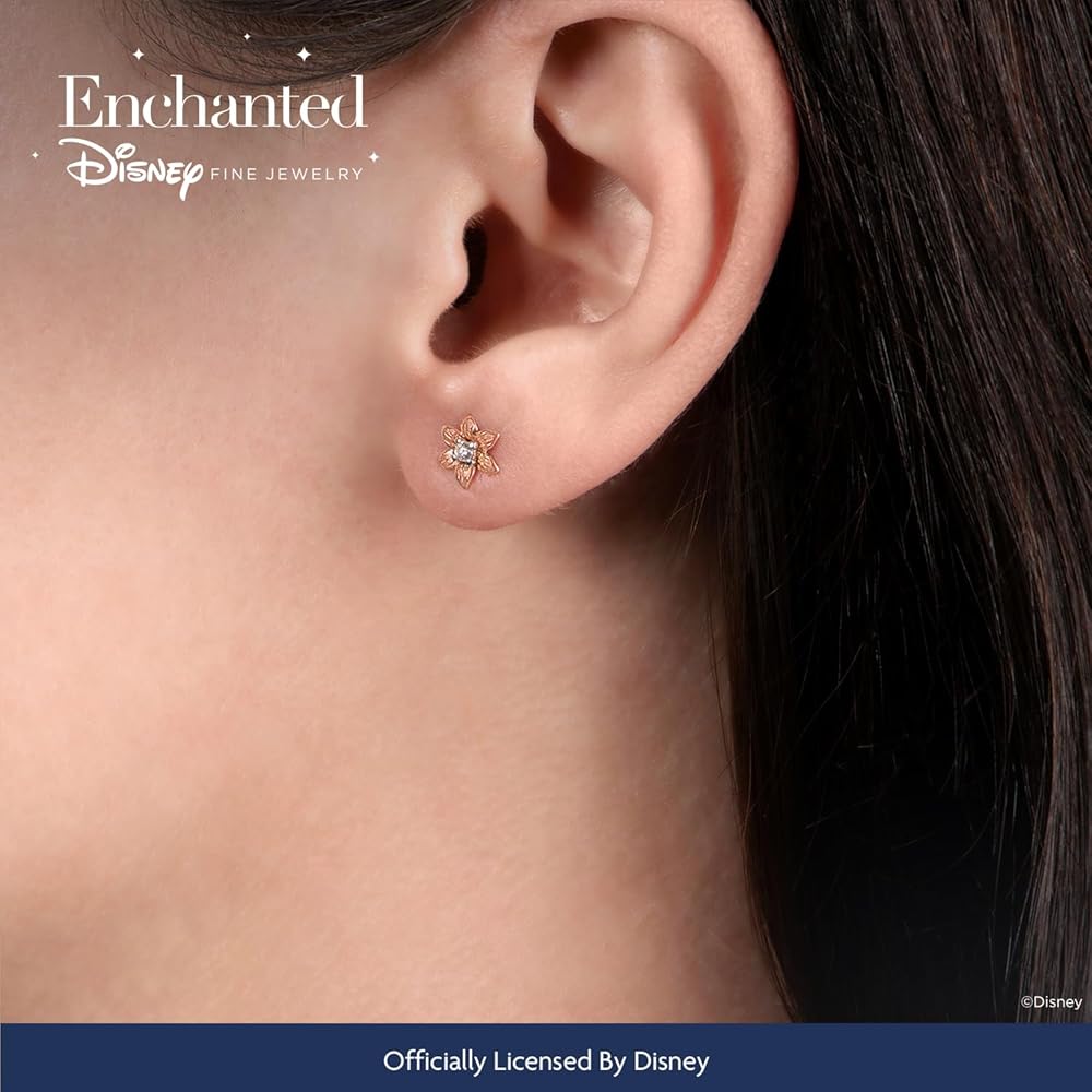 Officially Licensed Disney Jewelry - Enchanted Disney Fine Jewelry Rapunzel Earrings in 10K Rose Gold 1/20 Cttw Natural White Round Diamonds