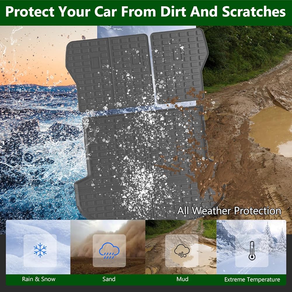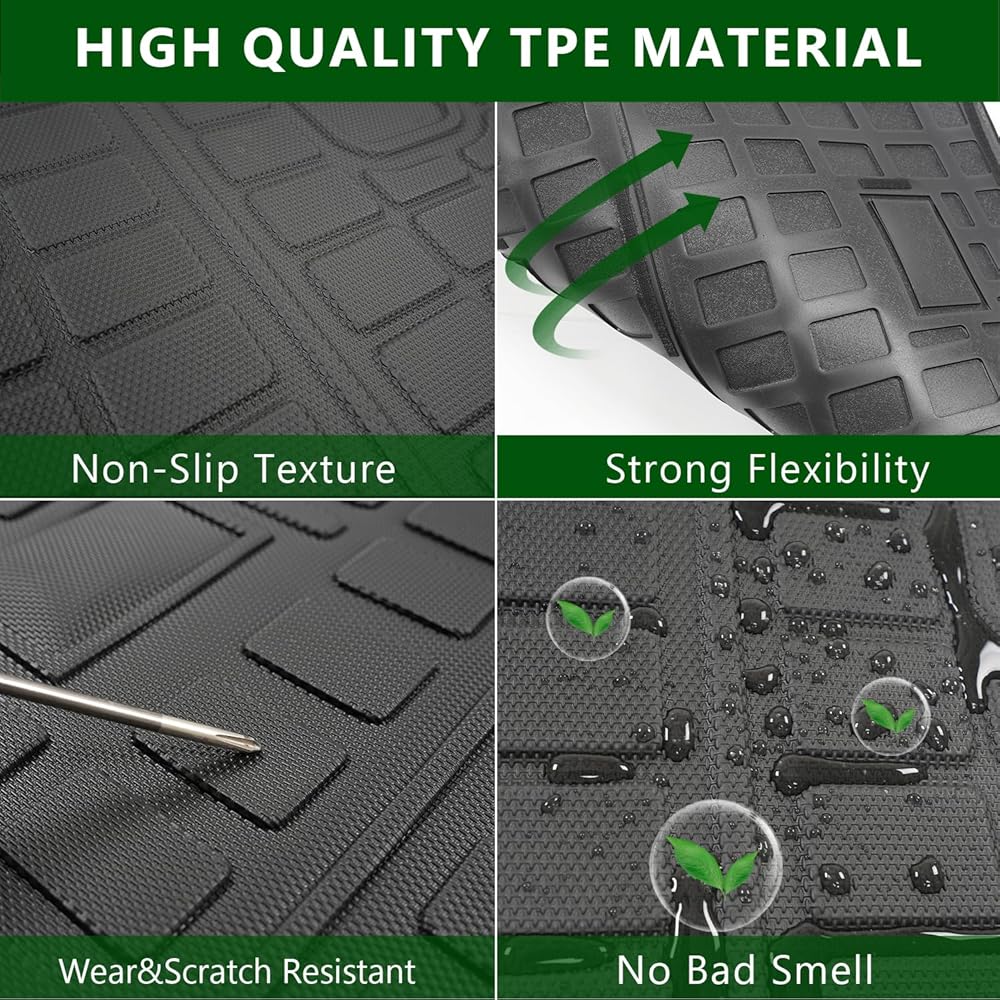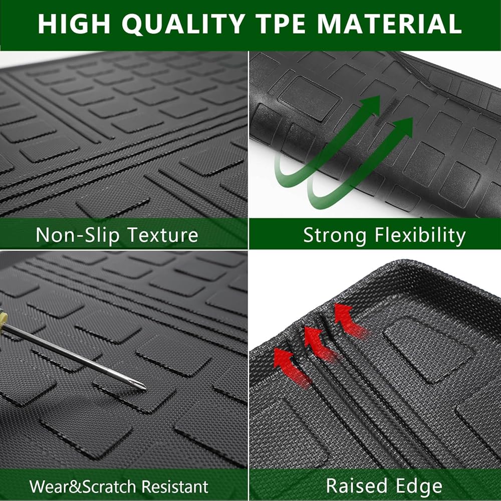 Premium TPE Material:Our trunk mat with backrest mat compatible with Santa Fe cargo mat which has the grain of rice is made of premium quality TPE with no bad smell.It is highly wear-resistant and flexible,and ensure long-lasting performance in various conditions.Also it is waterproof and easy to clean,you could use it for a long time.