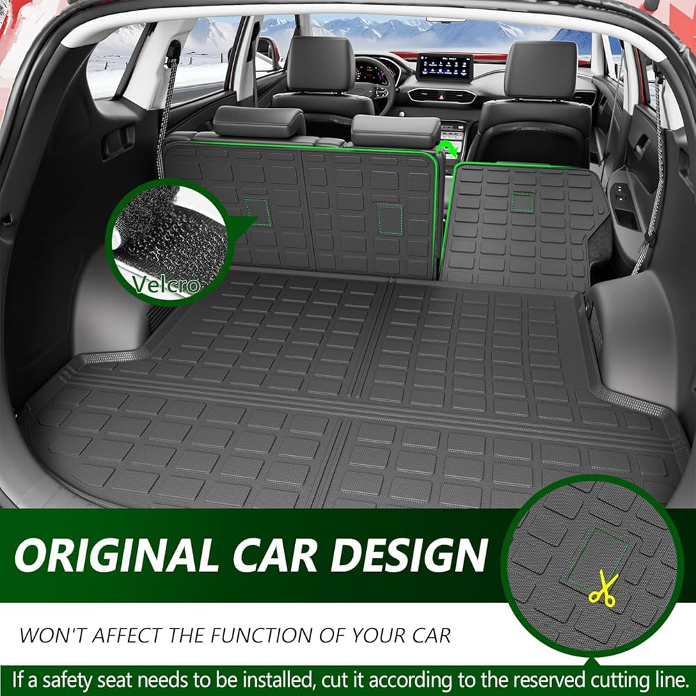 Custom Fitment:The cargo liner with backrest mat is designed according to the scale of the original car,it is compatible with 2024 2025 Santa Fe.It provides a custom fit that covers the entire trunk space effectively.