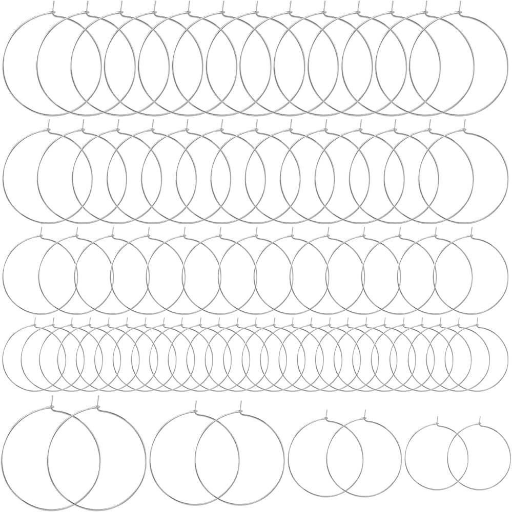 Pndeyo 280pcs Hypoallergenic Earring Beading Hoops, 20mm 25mm 30mm 35mm Round Hoop Earrings Findings, Open Earring Wire Ring Accessories for Jewelry Making- Silver & Gold