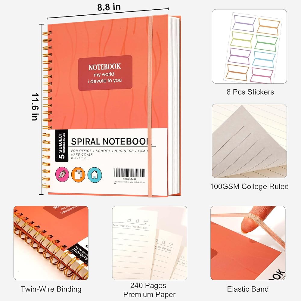✎Secure Elastic Band - The included elastic band keeps your spiral notebook closed and prevents any loose pages or notes from falling out. It provides a convenient way to keep everything in one place, making it easy to find what you need when you need it.