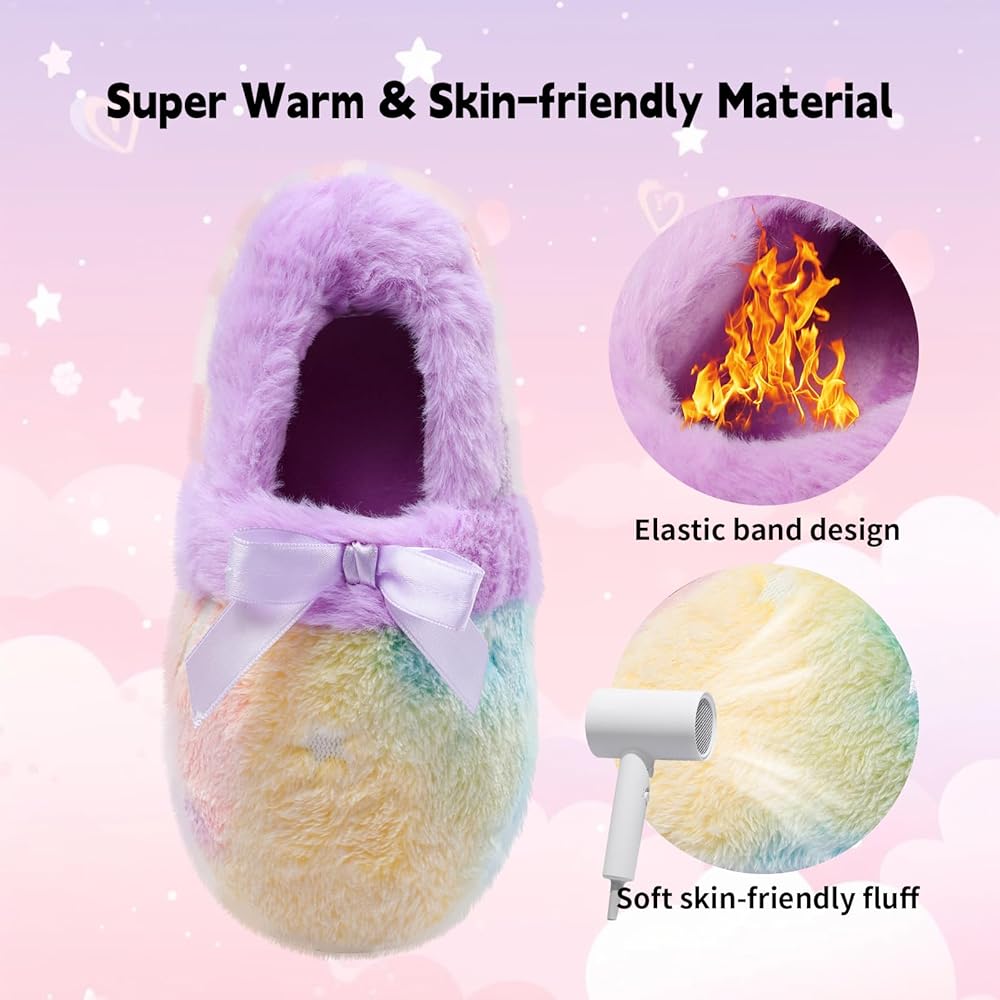 Soft Fuzzy Lining & Elastic-Band Desin: These slippers are crafted with a soft faux fur lining for the ultimate in warmth, comfort and skin-friendliness. Elastic band design not easy to slide, fully covered heel hold little feet and keep warm all day. Perfect for kids daily wear.