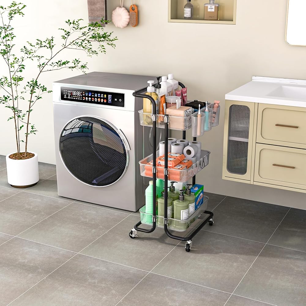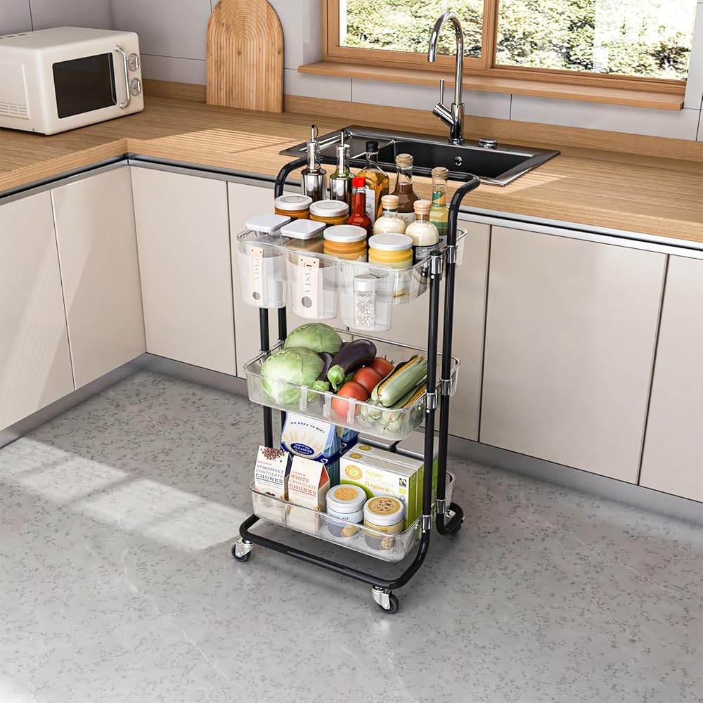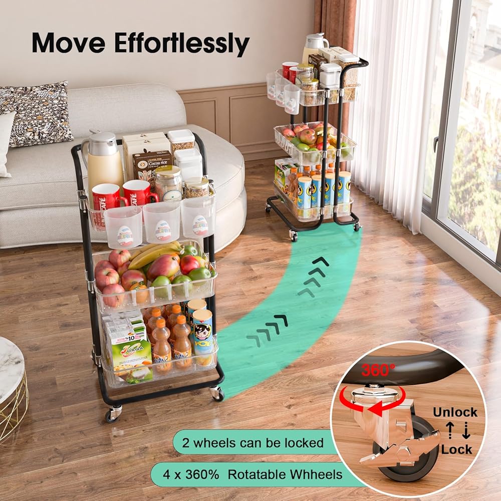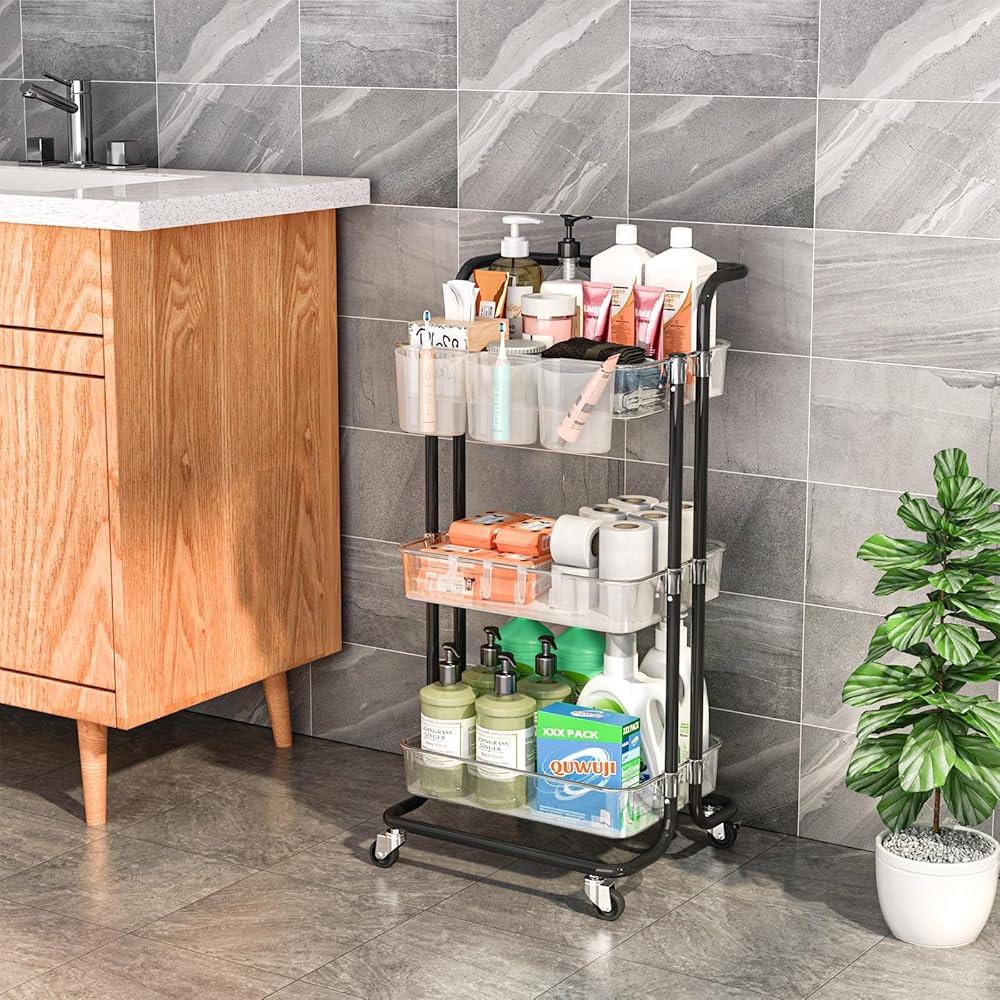 Multifunctional Storage Cart:This 3-tiered utility organizer is exquisite and keep all your messy items in order and save a lot of space in your house. Perfect for organizing cosmetics, snacks, books, office supplies, cleaning supplies and other items.