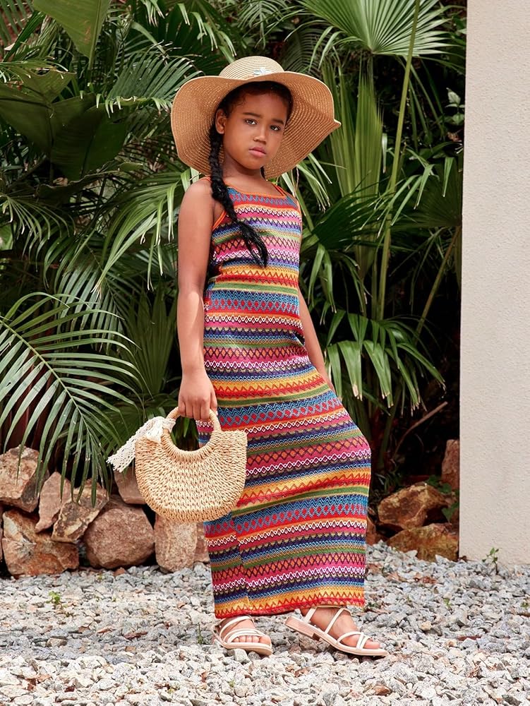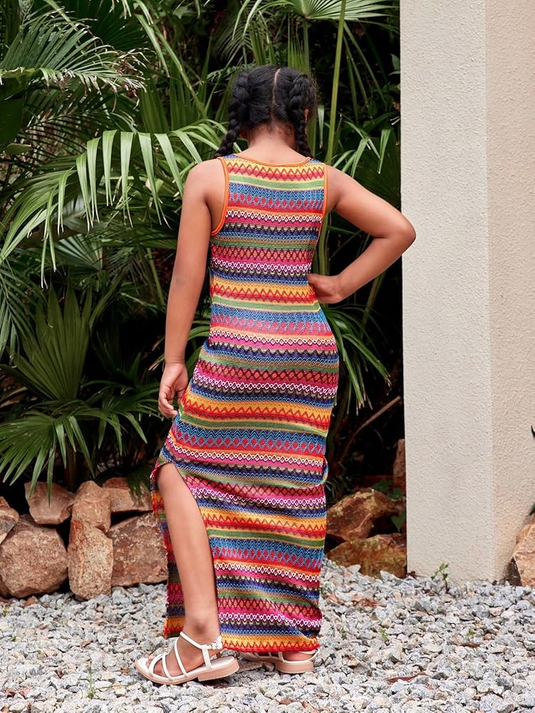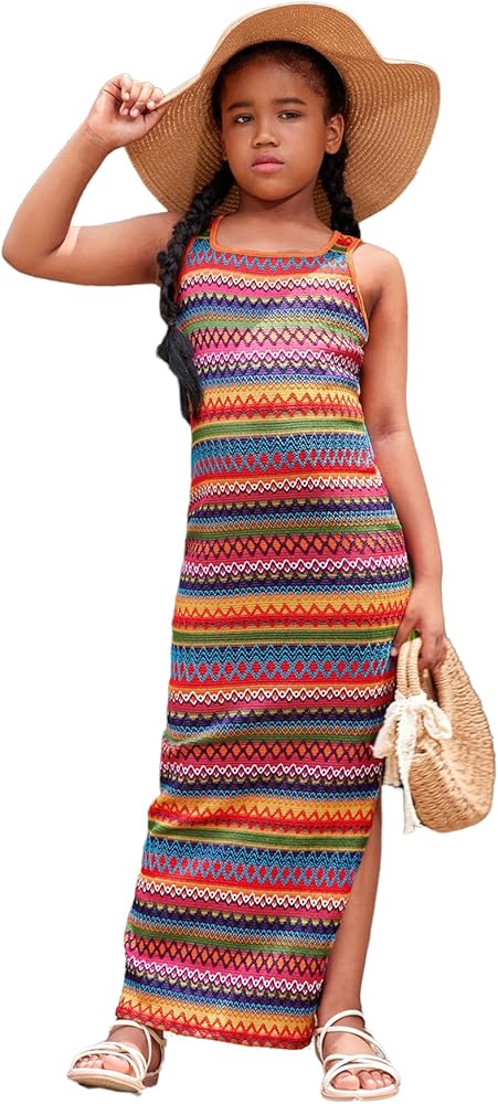 - Features: Sleeveless, square neck, split, split thigh, geometric, striped, maxi, long, boho, soft, trendy, lightweight