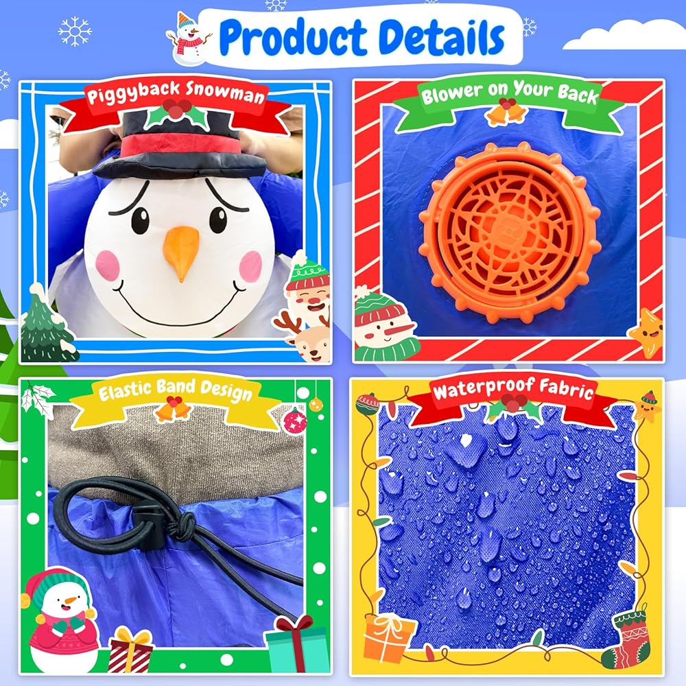 【Durable Inflatable Costumes for Adults】Crafted from high-quality, reinforced polyester fabric, this blow up costume is built to last through energetic dance moves and boisterous group photos. The snowman inflatable costume' self-supporting structures maintain his shape and volume, even after hours of wear, allowing you to fully immerse yourself in the festivities, whether at a party, parade, or event, making it a perfect choice for Christnas celebrations and winter-themed gatherings.