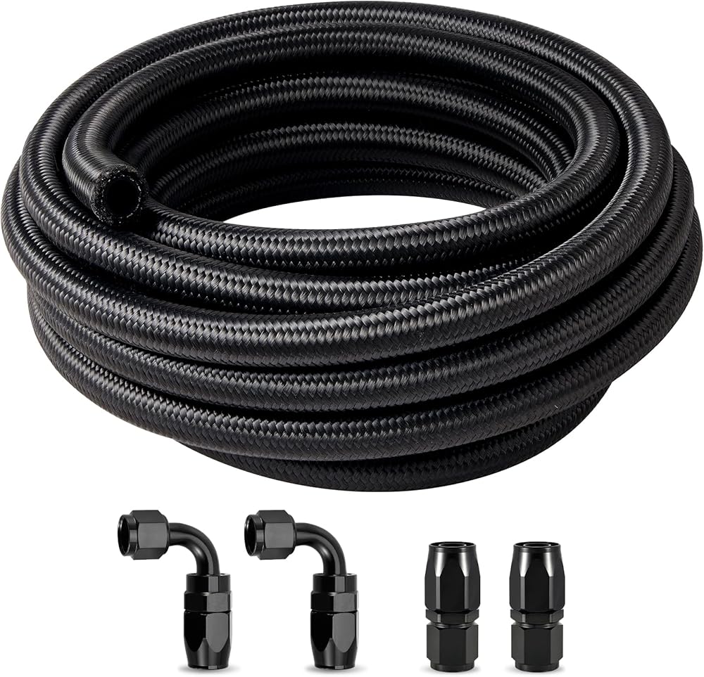 - Nylon and stainless steel braided fuel hose kit can be compatible with transmission fluid, oil, race gas, vacuum, hydraulic fluid, diesel and fuel.