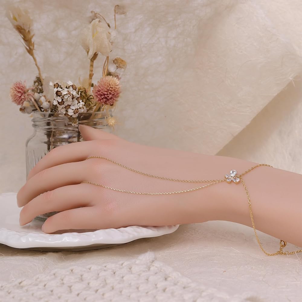 Trendy harness chain finger bracelet, with sparkling brilliance, made of high-quality stainless steel, delicate and sturdy, hypoallergenic, non-irritating to your skin. Durable and smooth chain, safe and comfortable to wear.