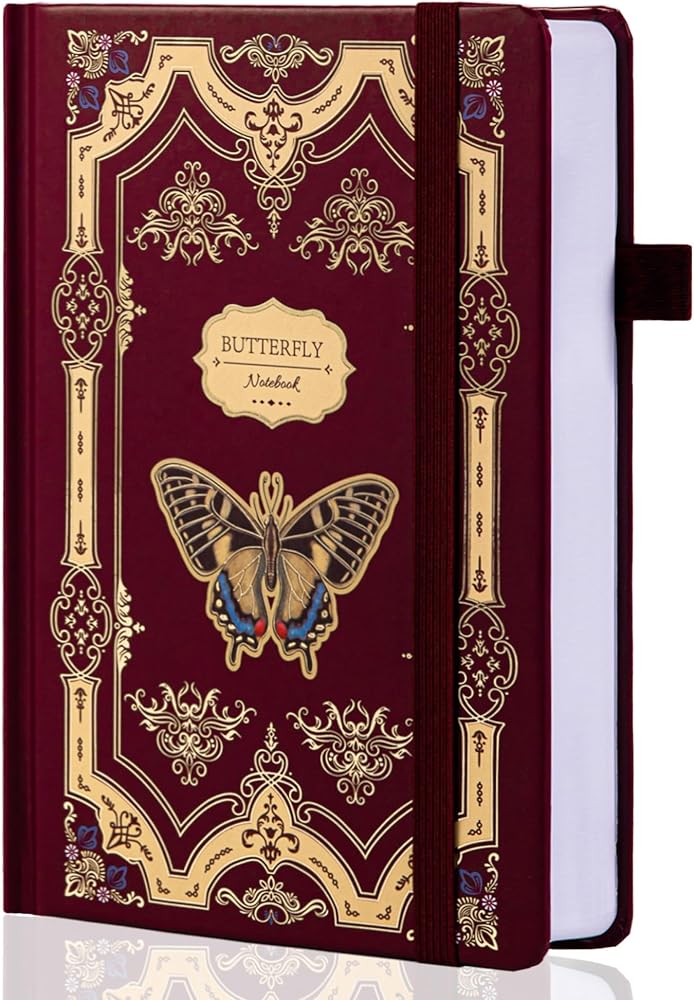 Personalized Butterfly Cove: Designed with a butterfly sketch surrounded by illustrations of flowers and leaves, the TIEFOSSI hardcover diary's foil stamped illustrations will brighten up your room and add a touch of art to your life. Balancing beauty and practicality. Perfect gift for women, men, students, girls, birthdays, Halloween, Christmas, back to school, etc.
