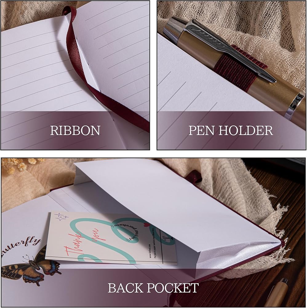Hardcover notebooks: The TIEFOSSI Lined Journal Hardcover Notebook is designed with an elasticated closure band to keep it tightly closed to protect your contents. Comes with a ribbon of the same color to help secure the position of the last entry, pen loop so you don't forget to bring a pen, comes with a back pocket for small cards and other items, and rounded edges to close the journal for better protection.