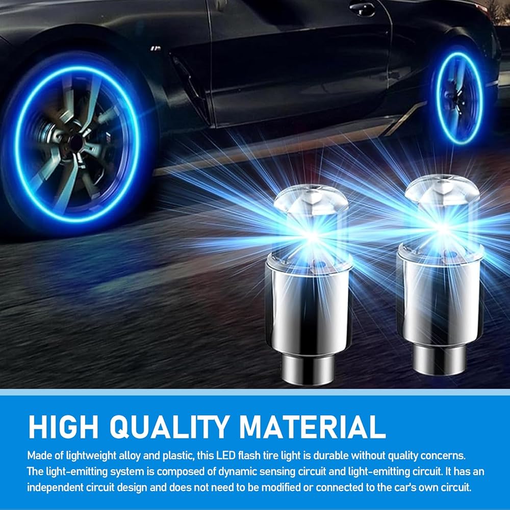 Safe Driving: This tire valve light improves visibility when driving at night and serves as a safety warning, allowing passers-by and others to see your car from a long distance, ensuring riding safety.