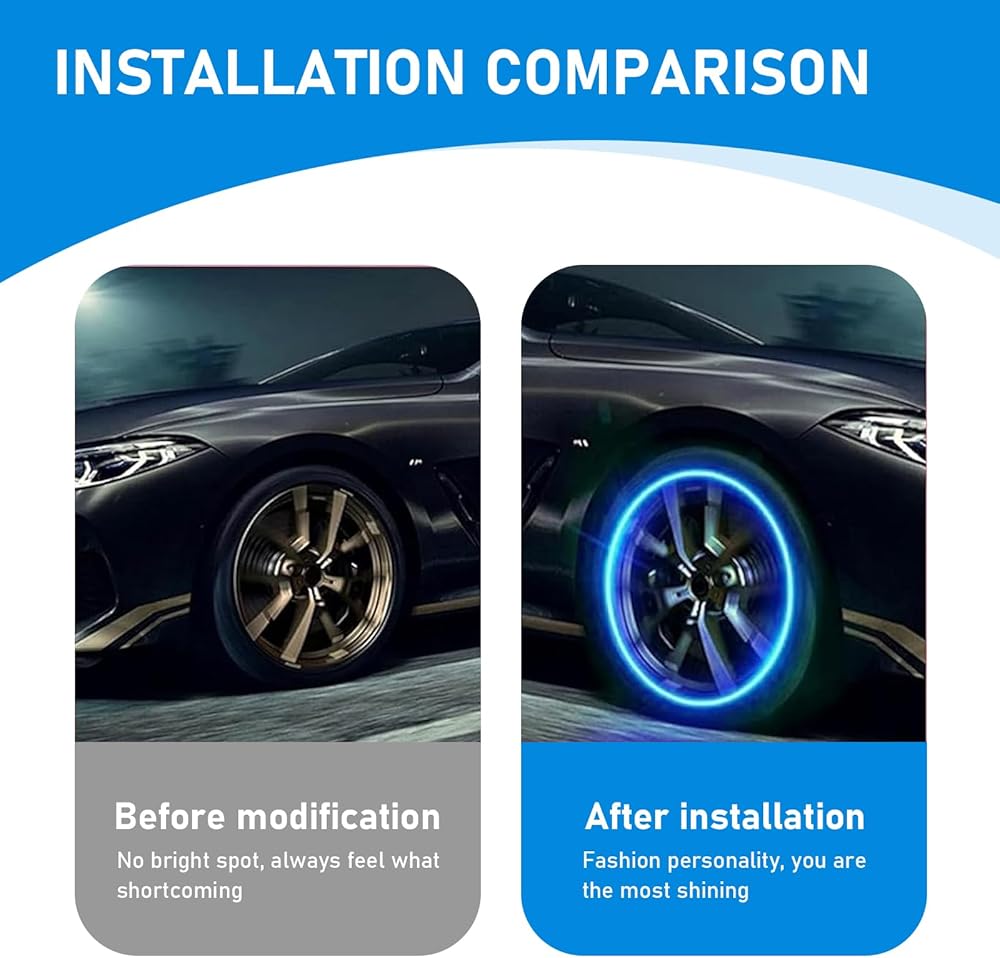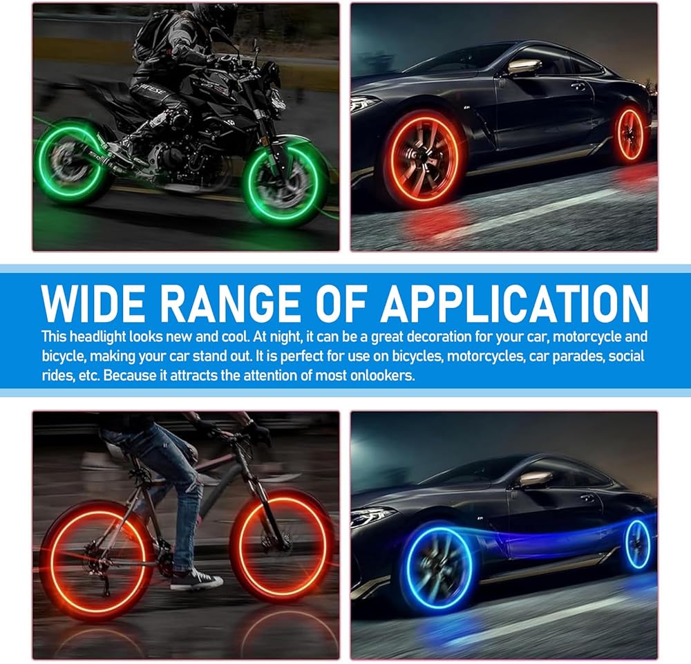Cool Experience: This tire valve cap decorative light will form a luminous ring as the tire rotates while the car is driving. The stunning luminous effect has high return rate of the crowd. Bring you the ultimate driving experience and enhance driving pleasure.