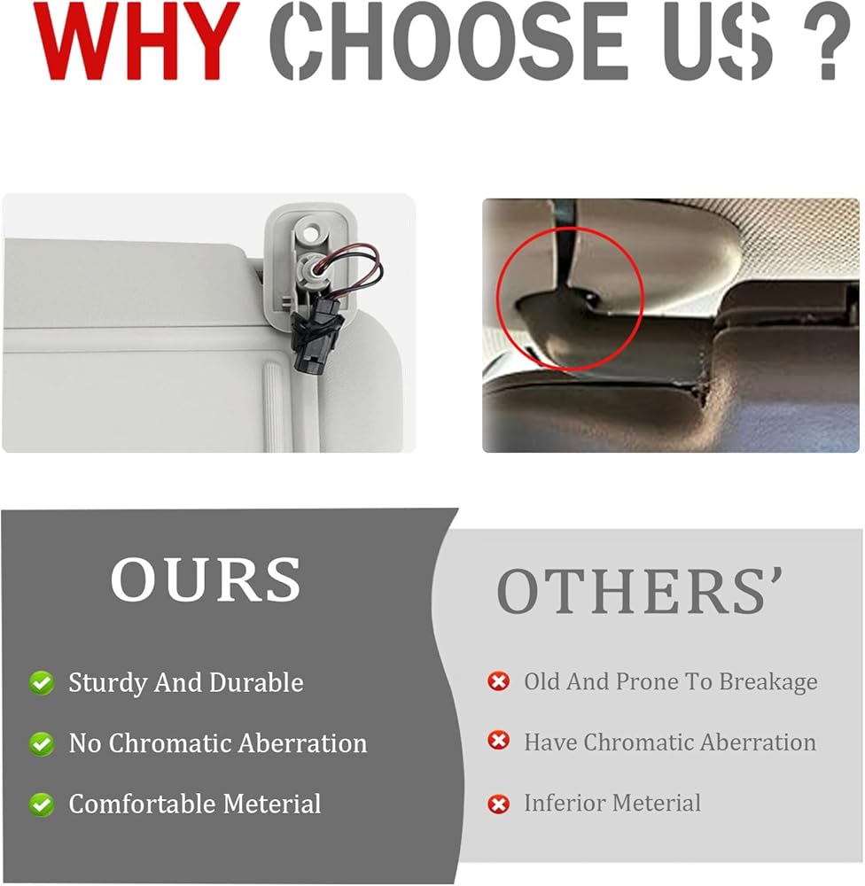【Easy to install】 - Perfect to replace your old sun visor, no screws needed. You can directly replace the old and the bad ones in the car and Partially install the bracket cover into the sun visor bracket making sure both temporary set claws are engaged.