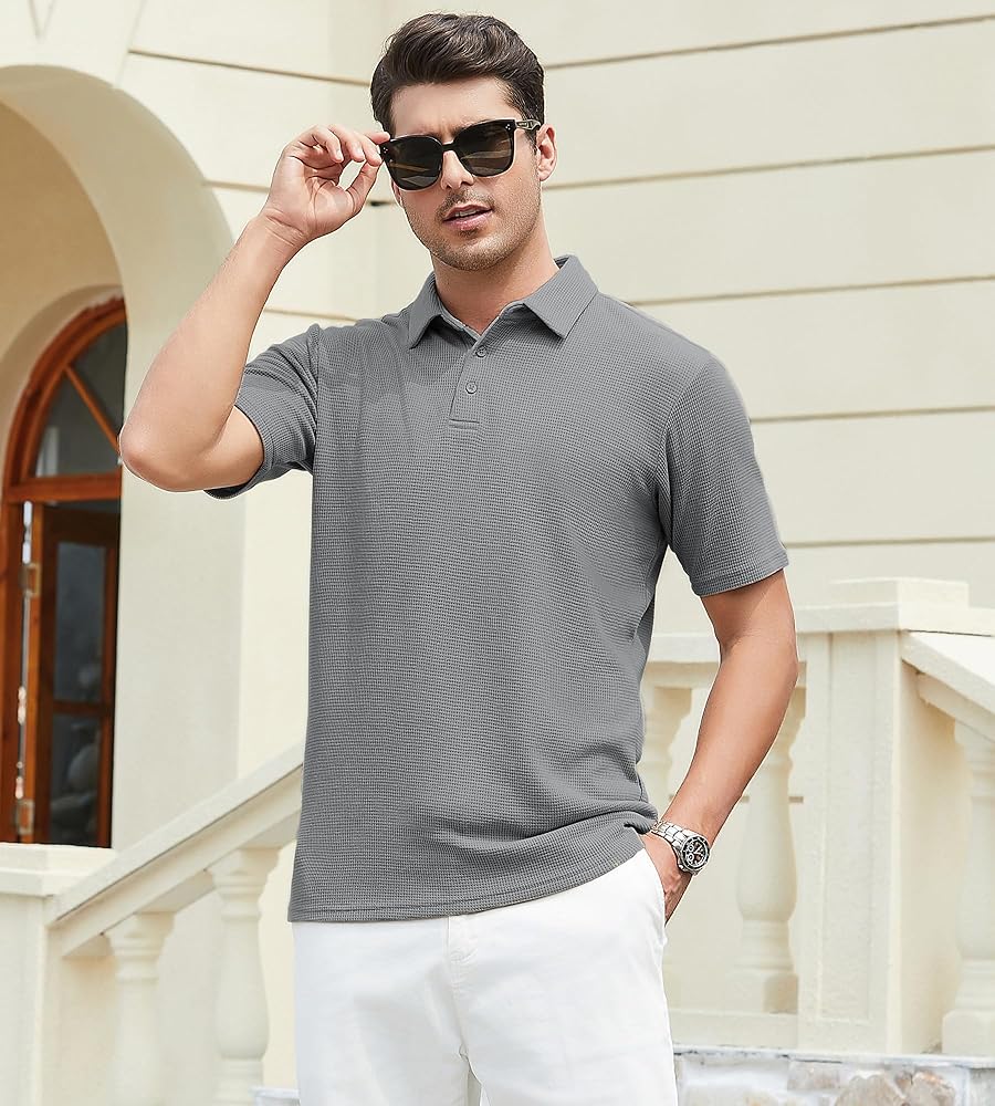 Effortlessly versatile: this knit polo t shirt pairs well with tailored trousers for a polished look, or with jeans for a laid-back vibe, making it suitable for both formal and casual activities.