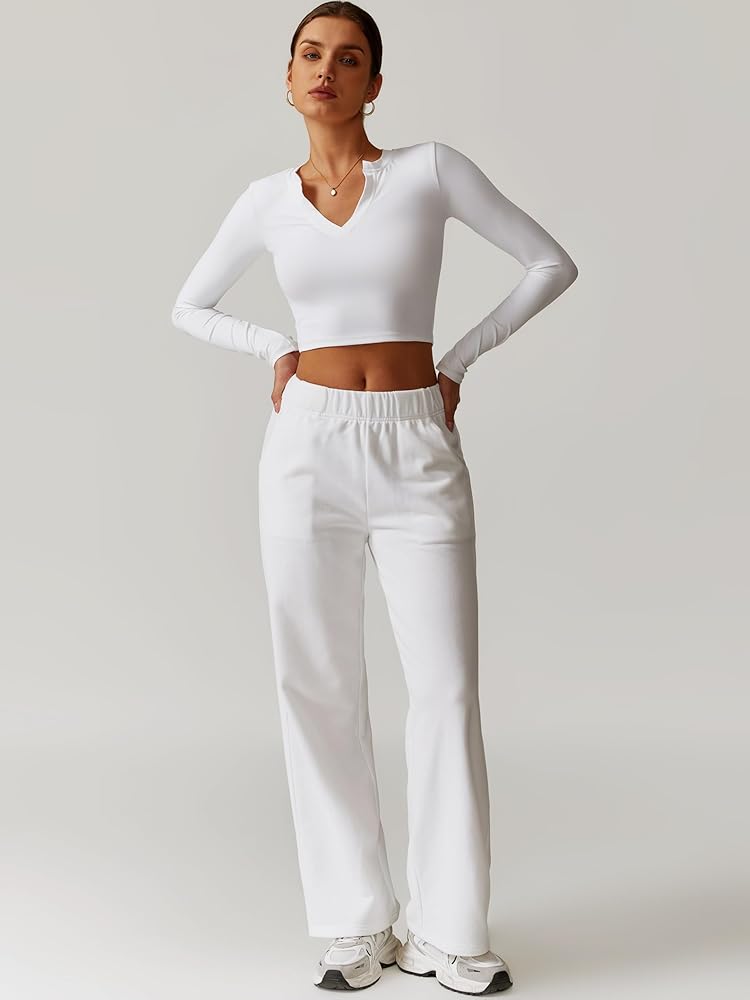 Sweatpants Women: The athletic high waist straight leg sweatpants jogger pants lounge trousers, allows for a total movement and flexibility when training. High waisted jogger pants straight leg sweatpants, elasticized waistband, can allow for a customized ease and fit to different body shapes. Two slant pockets at two sides, two patch pockets at back, free your hands and store your own belongings for a relaxing trip.