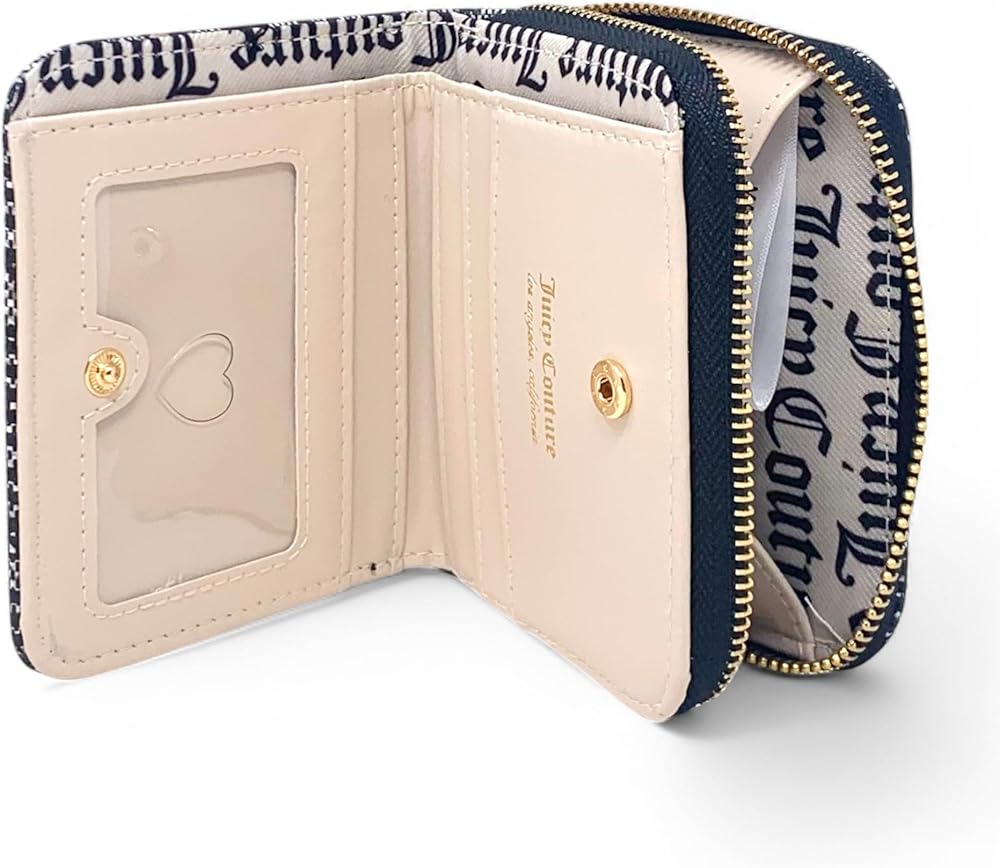 This faux leather wallet features brand logo trim and accents, snap fastening, faux leather and canvas interior with signature gothic print design, interior driver's license or other identification card holder pocket with transparent window, four credit or debit card holder pockets, a slip pocket for paper money and an expanding accordion-style pocket with zip-around closure. Juicy Couture is a glamorous, irreverent and fun lifestyle brand for the decidedly fashionable, bringing LA style and attitude to girls all over the world. Embracing its Los Angeles heritage Juicy discovers the couture in the everyday and delivers an element of surprise in all of its designs.