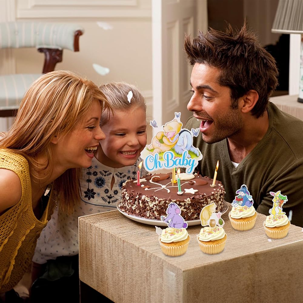 【Wildly Use】: The classic pooh cake topper nice for winnie baby shower decorations, winnie birthday decorations, first birthday party supplies, oh baby, welcome baby, classic winnie decorations for cupcakes, cake, desserts decor