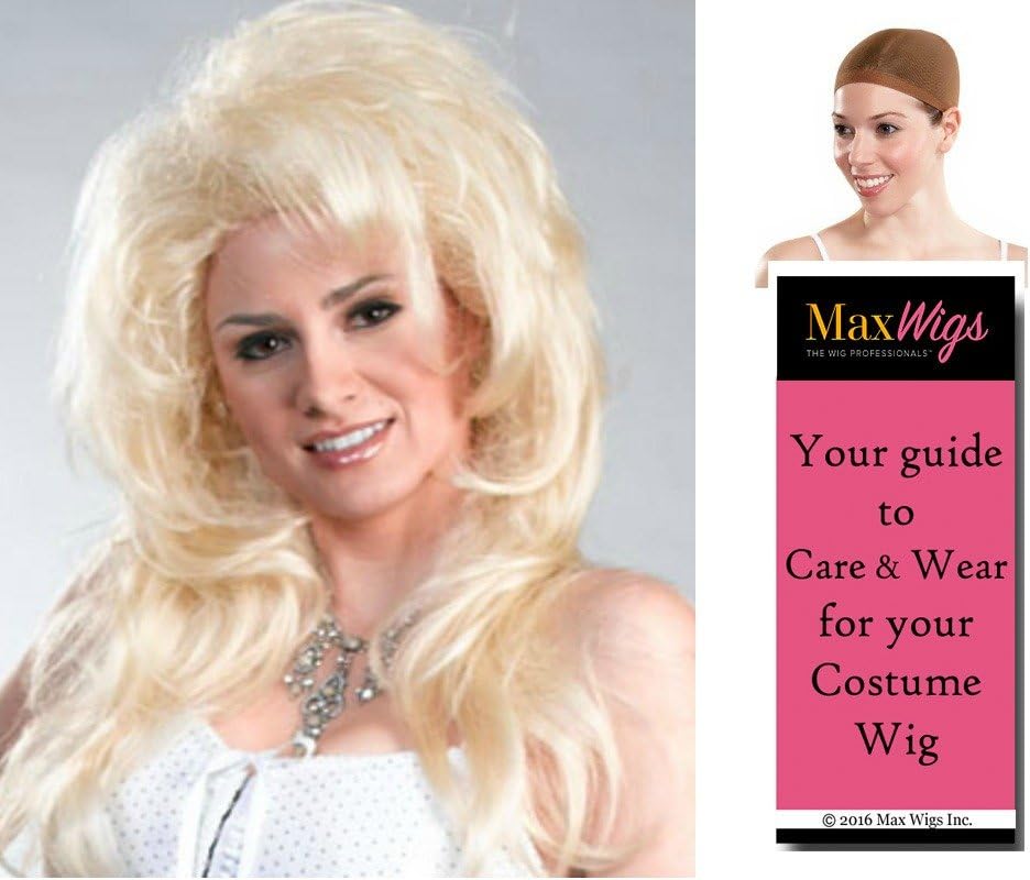 The perfect Dolly for an Eighties look. New Dolly Parton color BLONDE - Enigma Wigs Wynonna Judd Country Girl Singer Big Hair 1990s Party Womens Peluca Bundle MaxWigs Costume Wig Care Guide