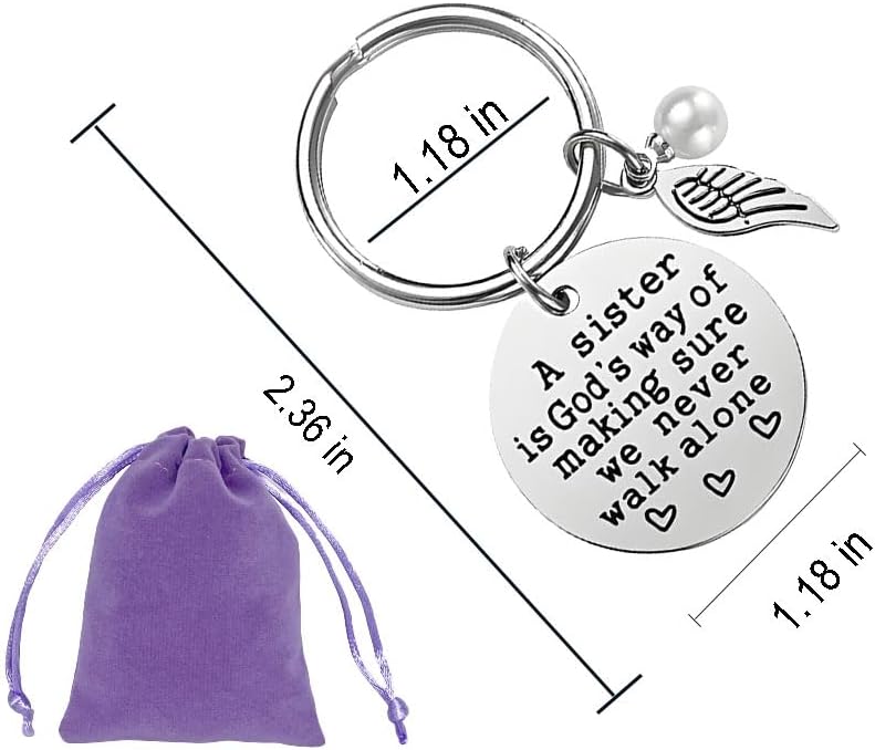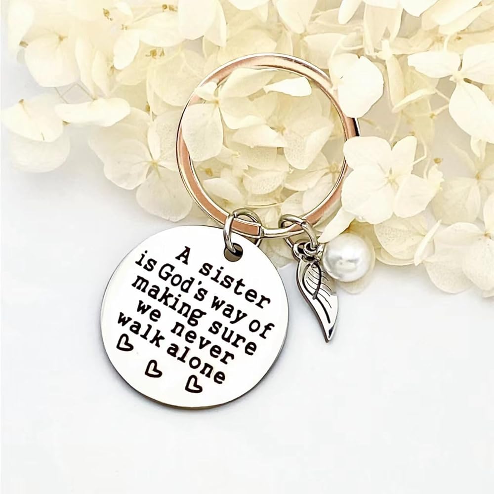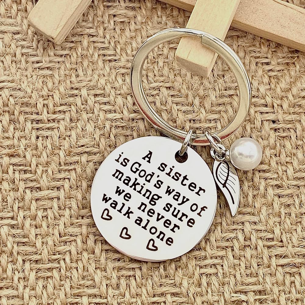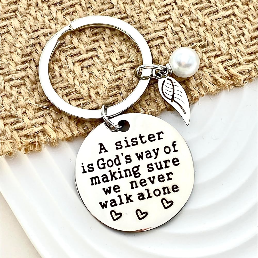 【Small Birthday Gifts】The keychain is engraved with A Sister is God's Way of Making Sure We Never Walk Alone. Unique sister keychain gift.