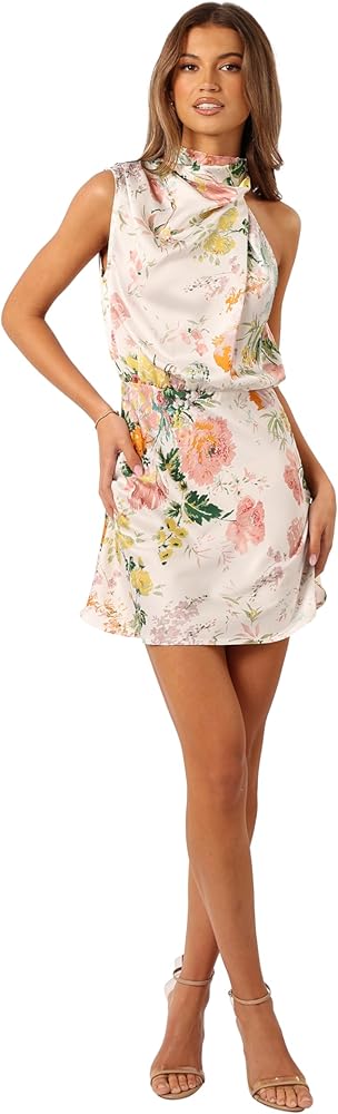 Look and feel your best in this stunning event wear dress! Featuring a mini length, an asymmetric high round neckline with gathered pleat detail, plus a back neck opening with button close, it's the perfect party dress for any special occasion. Not only does it look fabulous, but it feels as good as it looks too — crafted from a soft satin feel just for extra comfort.