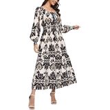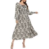 Modest Dress Design: This flowy maxi dress square neck The high-waisted design conceals the belly area. The layered A-line dress can visually elongate your legs, providing perfect proportions.