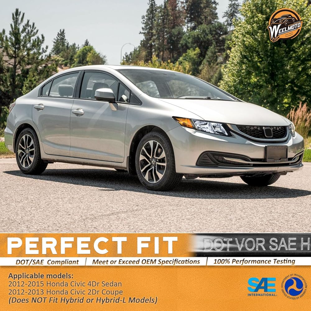 WEELMOTO for 2012-2015 Honda Civic 4Dr Sedan Headlights for 12-13 Honda Civic 2Dr Coupe Pair Headlamp Black Housing Amber Reflector Left+Right Side (Does NOT Fit Hybrid or Hybrid-L Models)