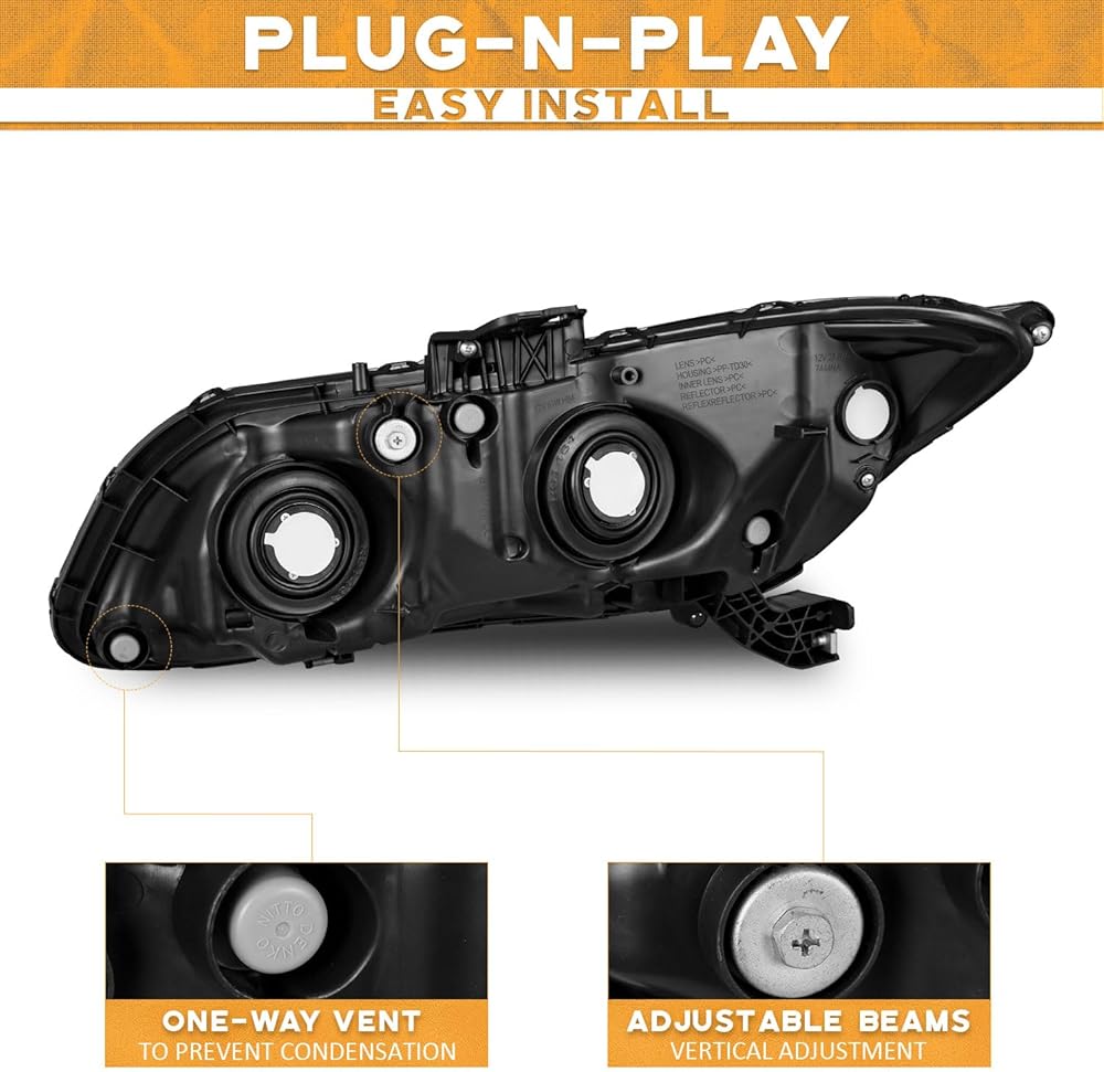 𝐎𝐄𝐌# 33100-TR0-A01, 33150-TR0-A01: Get a 100% match for your vehicle: This replacement is ideal for 𝟐𝟎𝟏𝟐-𝟐𝟎𝟏𝟓 𝐇𝐨𝐧𝐝𝐚 𝐂𝐢𝐯𝐢𝐜 𝟒𝐃𝐫 𝐒𝐞𝐝𝐚𝐧, 𝟐𝟎𝟏𝟐-𝟐𝟎𝟏𝟑 𝐇𝐨𝐧𝐝𝐚 𝐂𝐢𝐯𝐢𝐜 𝟐𝐃𝐫 𝐂𝐨𝐮𝐩𝐞. (𝐃𝐨𝐞𝐬 𝐍𝐎𝐓 𝐅𝐢𝐭 𝐇𝐲𝐛𝐫𝐢𝐝 𝐨𝐫 𝐇𝐲𝐛𝐫𝐢𝐝-𝐋 𝐌𝐨𝐝𝐞𝐥𝐬) Kindly note, bulbs are not included; please use stock bulbs for installation.Ultra-brightening chrome bezel: Get premium plating with durable material