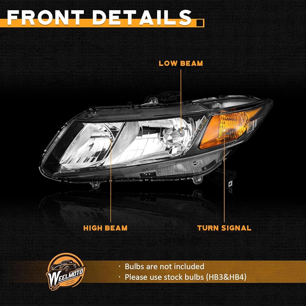 𝐑𝐞𝐯𝐨𝐥𝐮𝐭𝐢𝐨𝐧𝐚𝐫𝐲 𝐥𝐢𝐠𝐡𝐭𝐢𝐧𝐠 𝐞𝐱𝐩𝐞𝐫𝐢𝐞𝐧𝐜𝐞: WEELMOTO's design team uses professional equipment to create an expert light pattern for super-bright headlights that meets the SAE standard (Society of Automotive Engineers). Compatible with:headlights 2012 honda civic/headlight assembly 2013 honda civic/2012 honda civic headlights/2013 Honda Civic headlight / 2014 Honda Civic headlights / 2015 Honda Civic headlights