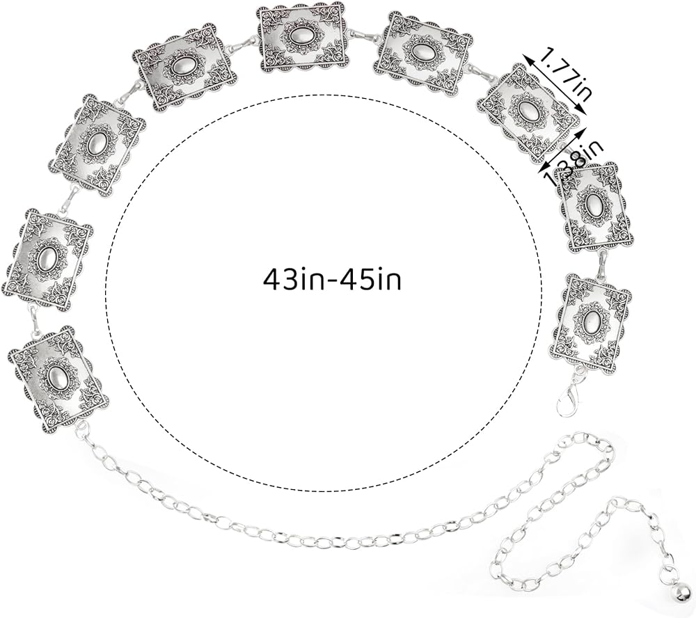 Comfortable Fit: The belt has a total length of 43-45 inches, a design that takes into account the needs of various body types. It is suitable for both petite and tall women, providing a wide range of applicability. At the same time, the size of the turquoises metal squares is just right; they can add highlights to the overall look without being too eye-catching, maintaining a sense of understated luxury