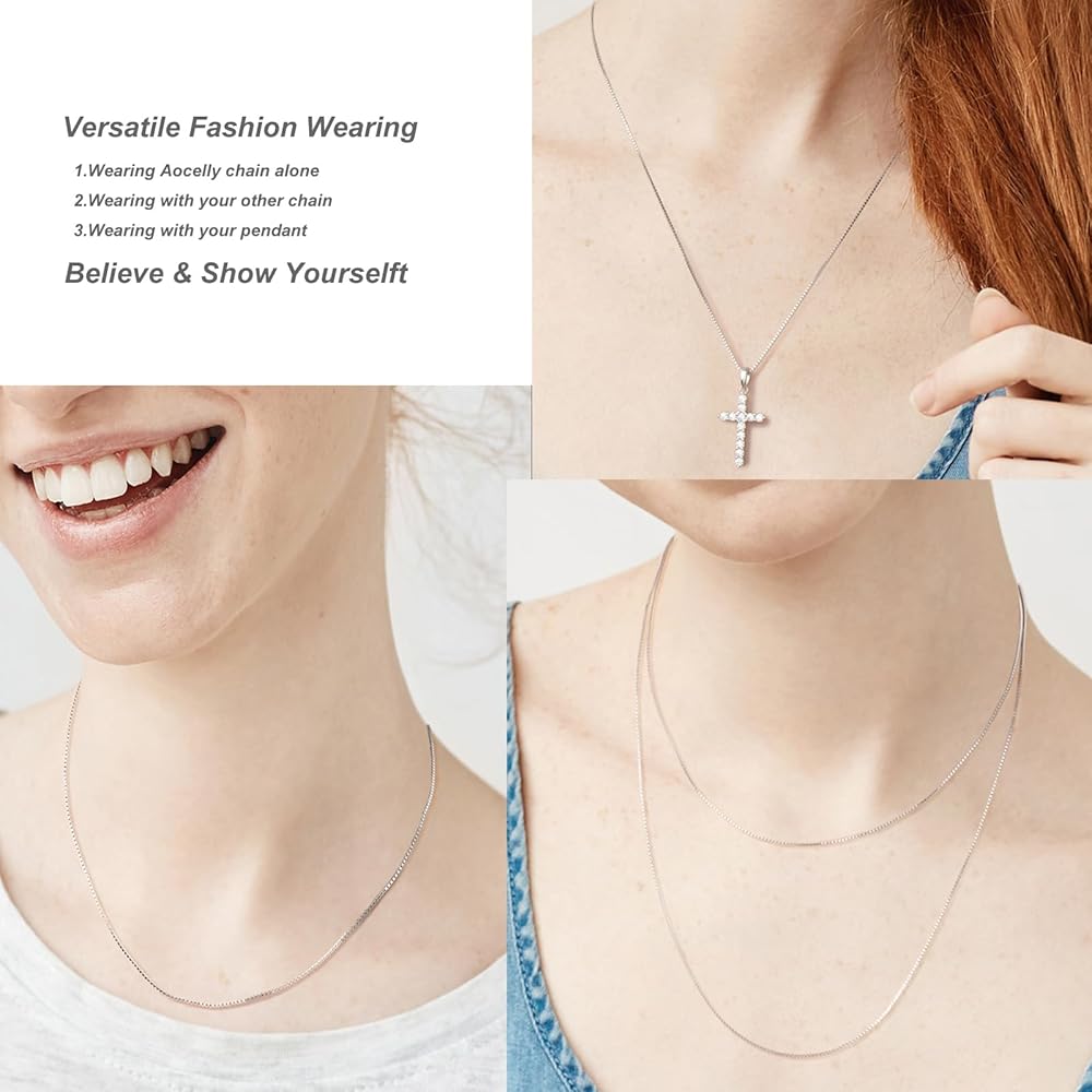 SIMPLE&CHIC DESIGN. 1mm thin & preminum italian box chain 18 inch with sturdy lobster claw clasp.Stamped 925 & ITALY.Lightweight & comfortable.