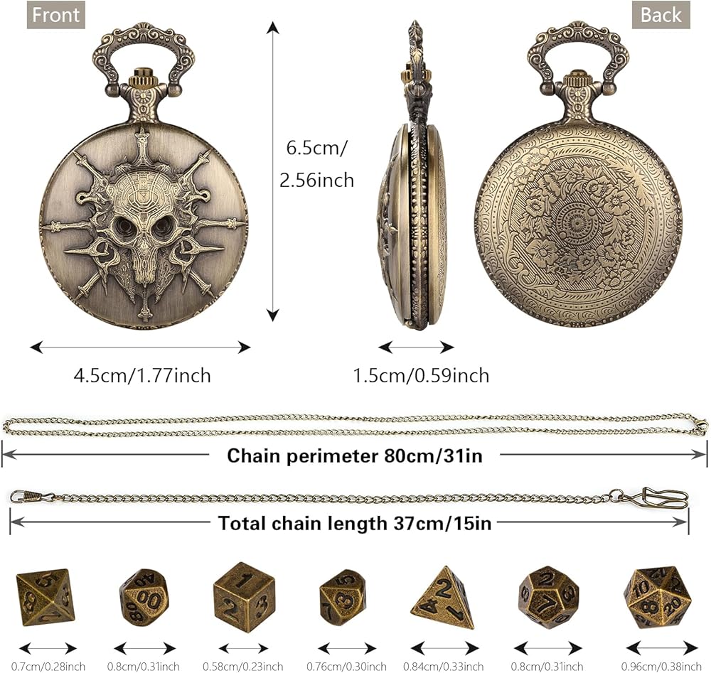 COMPACT AND PORTABLE: This pocket watch case dice is equipped with two chains, which can be hung on clothes or hung around the neck as a necklace. It is easy to carry and allows you to start a game at any time