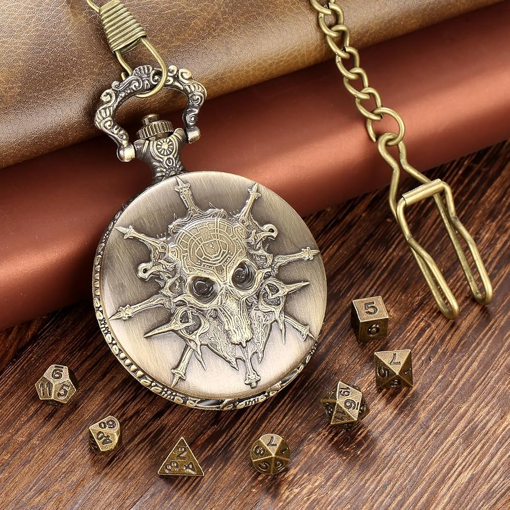 MYSTICAL DESIGN: Immerse yourself in the world of DND with this exquisitely crafted Warlock's Mystical Timepiece. The zince alloy pocket watch case features a steampunk-inspired design, evoking a sense of magical wonder and adventure