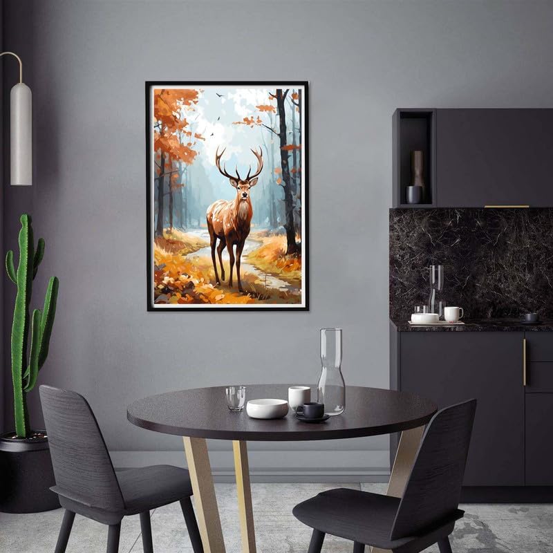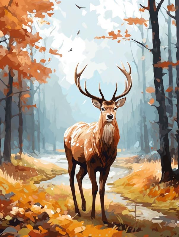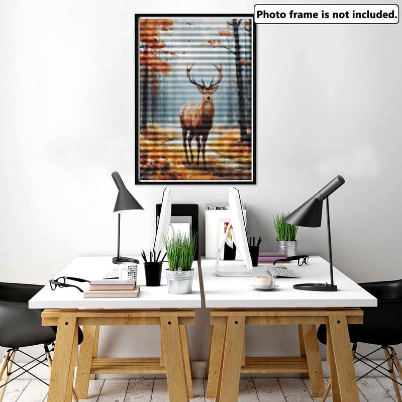 Yomiie 5D Diamond Art Kits for Adults, Autumn Deer Diamond Painting Art Animal DIY Full Round Drill Kits, Embroidery Rhinestone Diamond Crystal Craft Canvas Home Wall Decor 12x16 inch