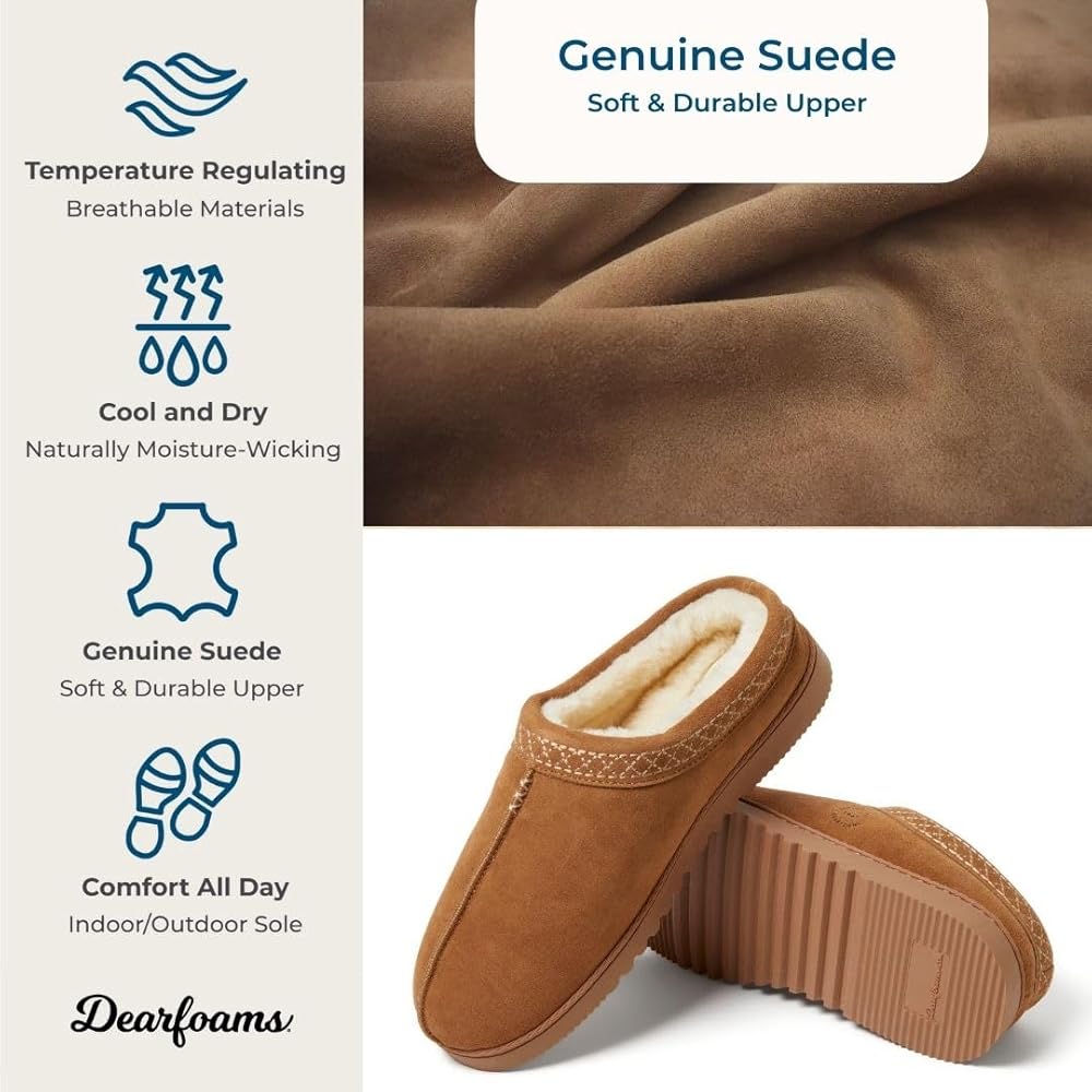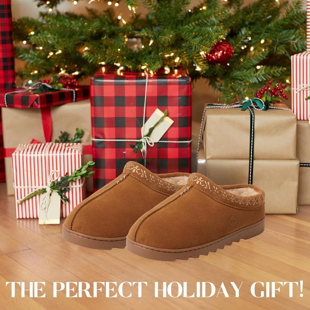 SLIP INTO LUXURY: Quality genuine suede upper and soft faux shearling lined insoles feel luxuriously plush and keep your feet cozy and warm all year round!