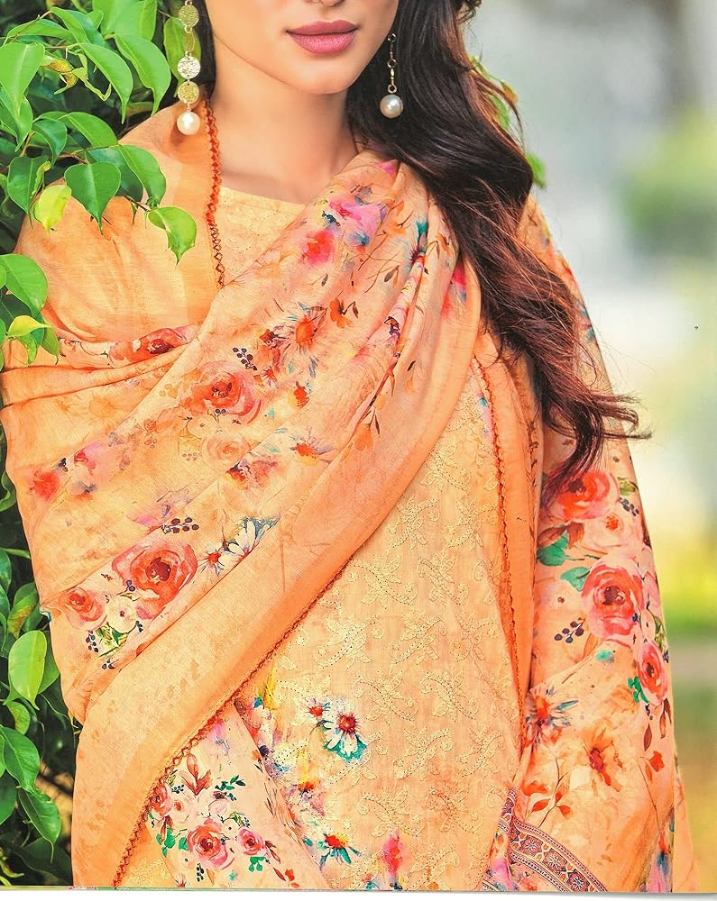 Soft Lawn Cotton Kameez with allover rich schiffli embroidery & printed along with saroski stones.