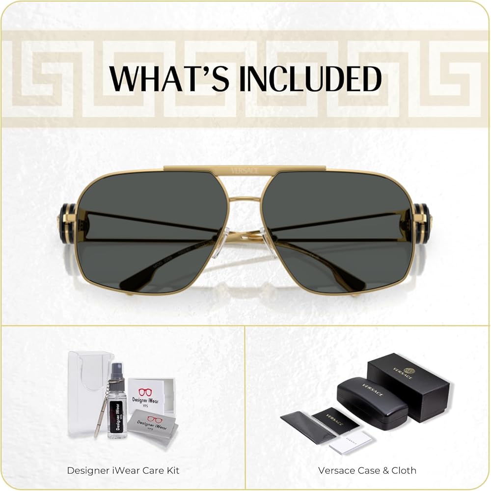 Versace VE2269 62MM Aviator Sunglasses For Men +BUNDLE with ACCESSORY EYEWEAR KIT