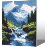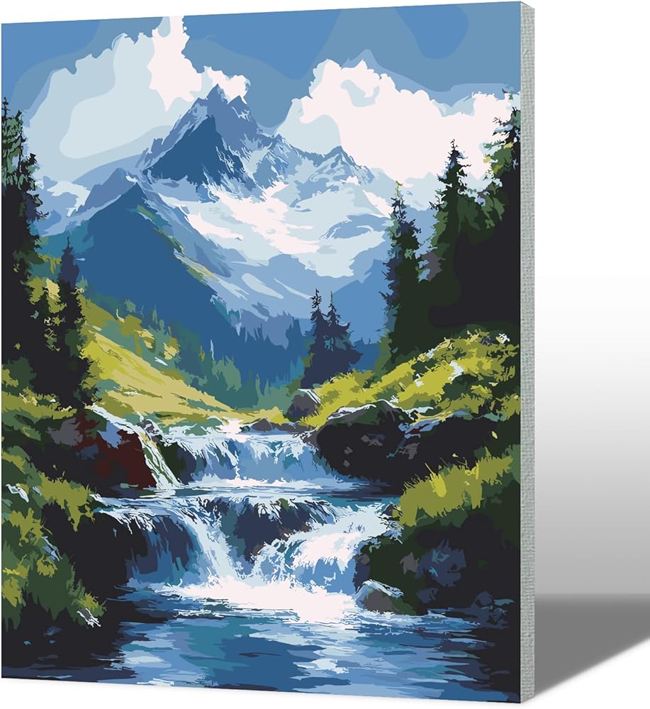 MAXBYE Landscape Paint by Numbers Kits for Adults Beginners with Wooden Frame, Easy Canvas Paint by Numbers Mountains and Rivers, DIY Oil Painting Art Kit for Home Wall Decoration 12X16 inch