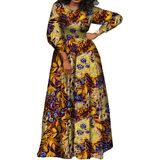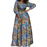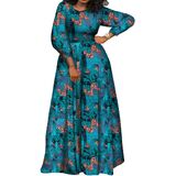 This is african traditional dresses for women,long sleeve and o-neck design shown african women elegant and fashion;It is the best choice to wear at the african party wedding,evening,and so on