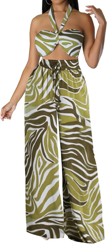 - Two piece outfits designed with tie front tube top with multiple ways of wearing, long straight pants, comfortable to wear,make you sexy and cute.