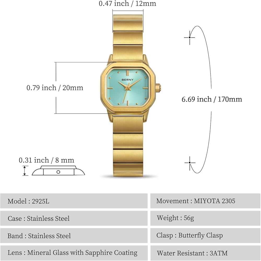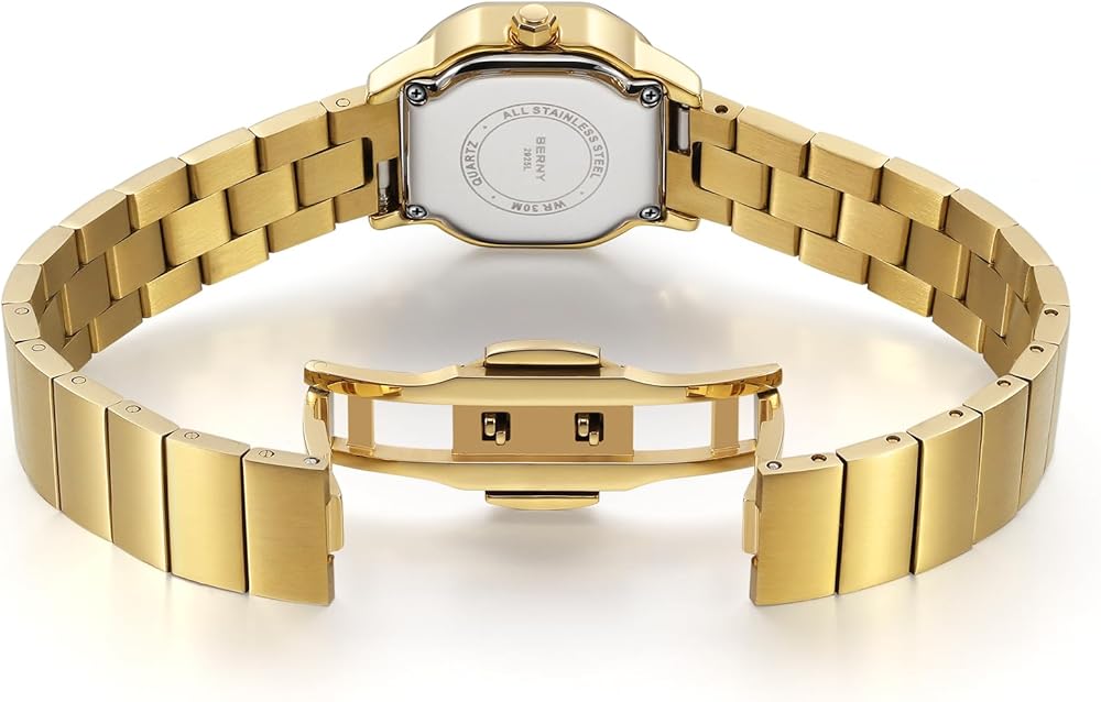 BERNY Gold Watches for Women Dainty Ladies Square Quartz Watch Japanese Quartz Movement 3ATM Waterproof Fashion Small Female Wrist Watch Luxury Birthday Gifts for Lady