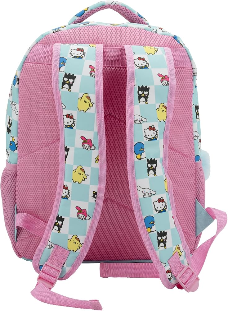 Hello Kitty is a fictional character produced by the Japanese company Sanrio. She is portrayed as a female white Japanese Bobtail Cat with a red bow worn on her left ear and often wearing overalls! Hello Kitty and all her friends are a staple of the kawaii segment of Japanese pop culture. Join her and her friends as they teach and learn about love, friendships and values. Doing all of this through some great adventures. Start that great adventure with this bright colorful backpack featuring Hello Kitty and some of her friends including Badte, Cinnamoroll, Purin, MY Melody, Tuxedo Same, Chococat.