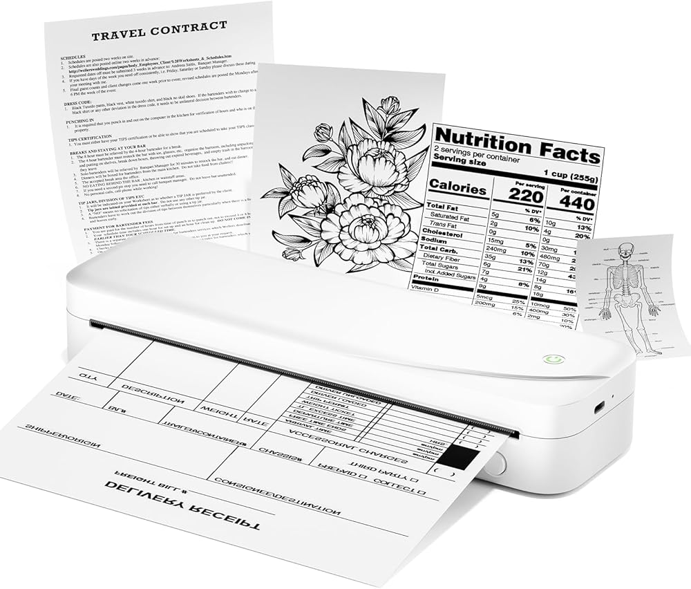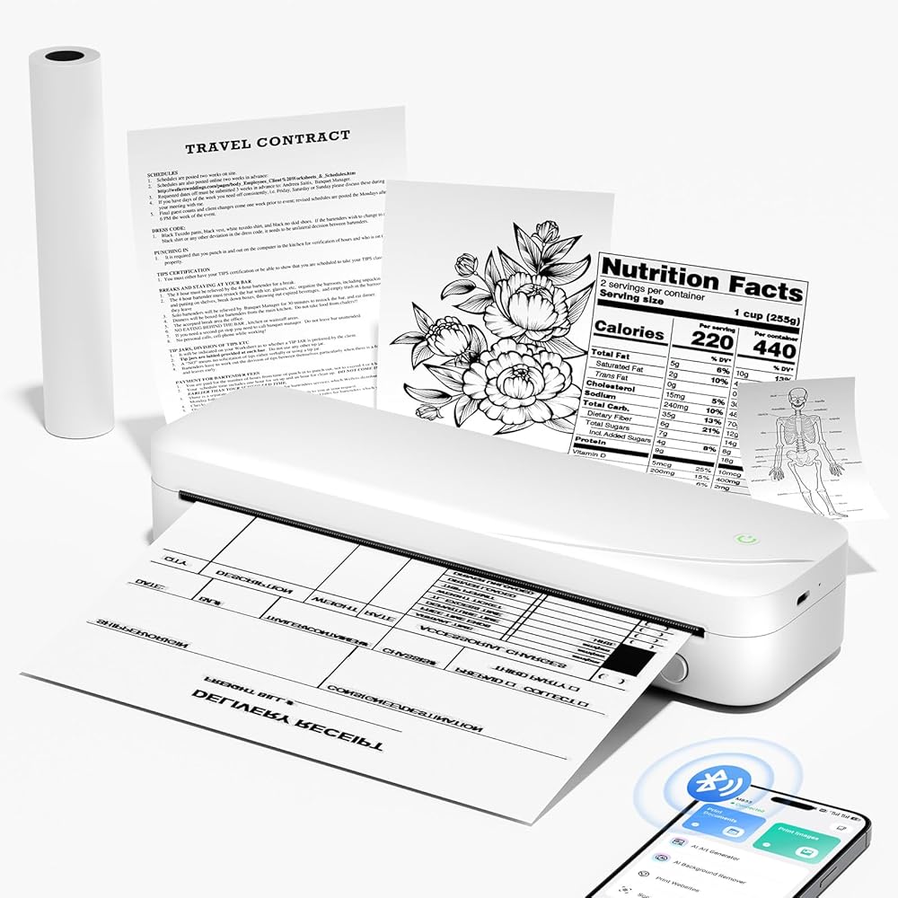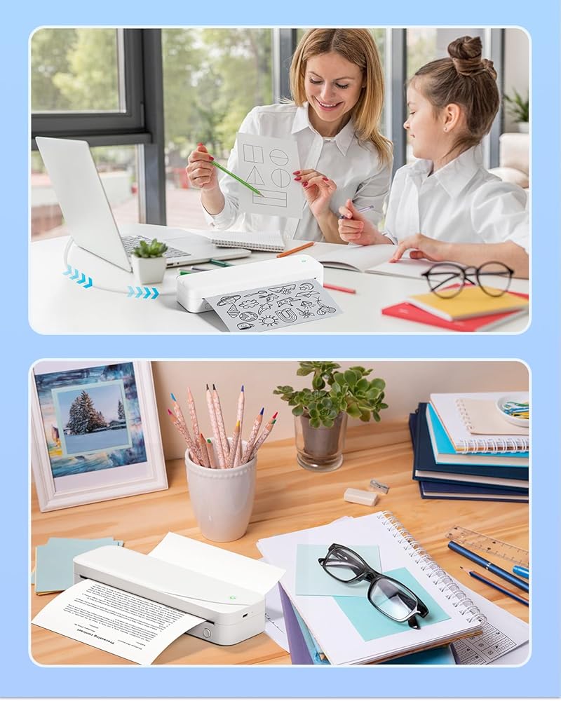 Memoqueen Portable Wireless Printer for Travel, M833 Inkless Thermal Printer Bluetooth Support 8.5'' x 11'' US Letter & A4 Thermal Paper, for Phone & Laptop for Office, School, Home